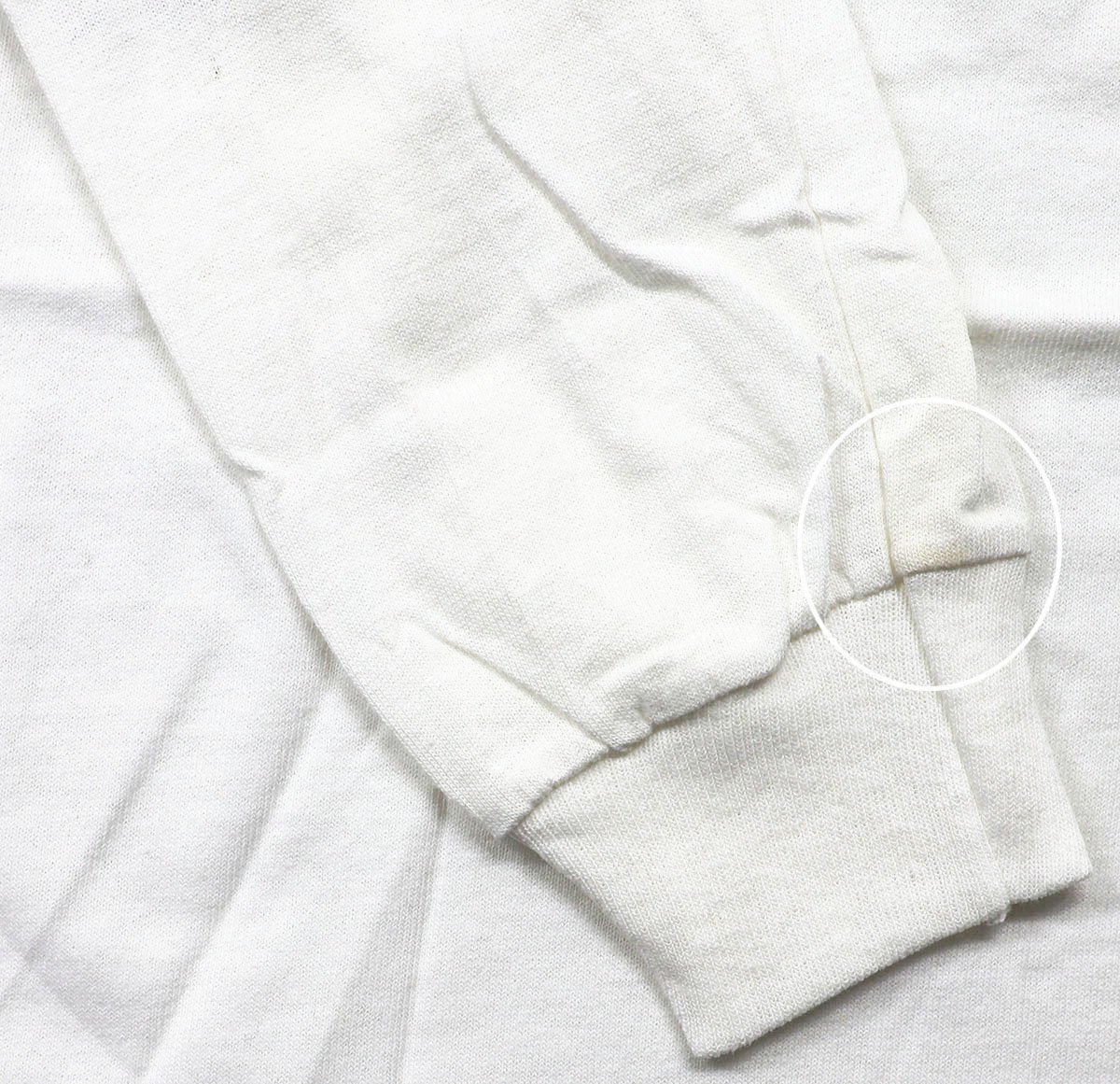 ◆商品状態 | 自宅保管の未使用品です。右袖と後身頃のサイドに長期保管に伴う薄い汚れが見受けられます。 |