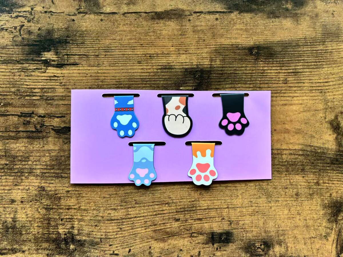 マグネットしおり 磁石付きしおり 栞 スピン ブックマーク 猫の手 犬の手 肉球 しおり5個セット