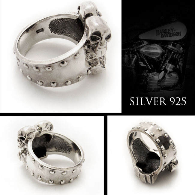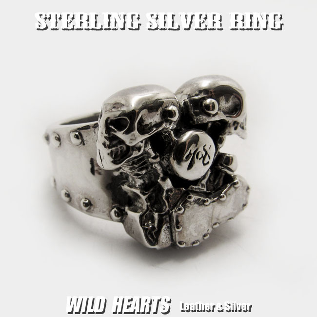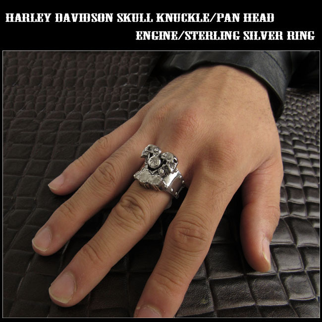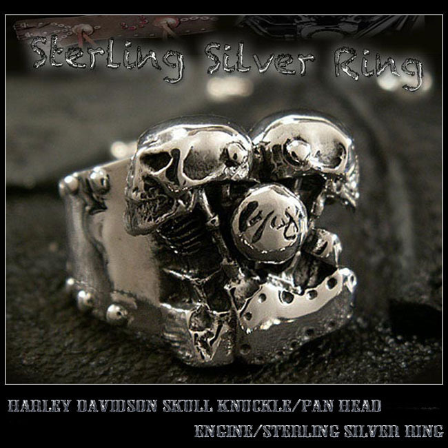 送料無料 21号 ハーレーエンジンモチーフリング スカルヘッド シルバーリング ハーレーダビッドソン V型エンジン 指輪 バイカー
