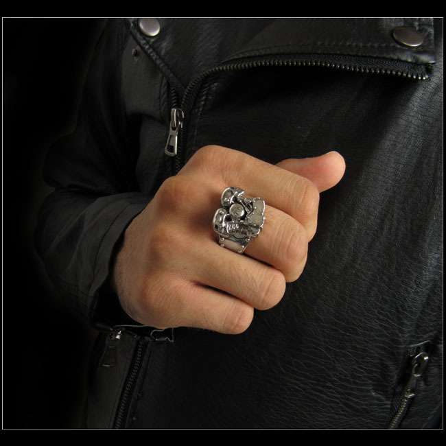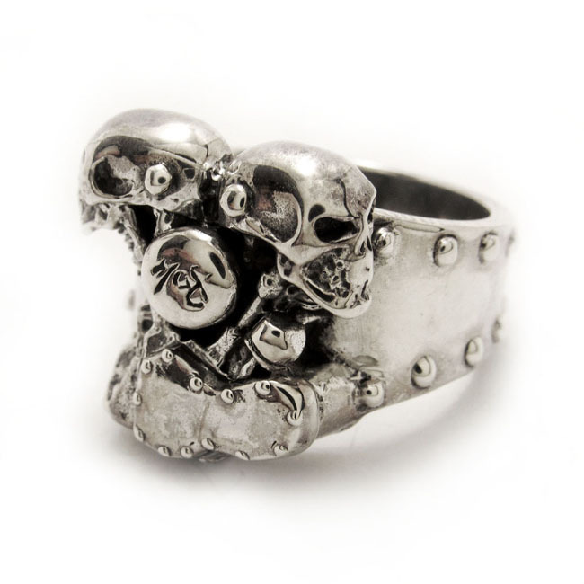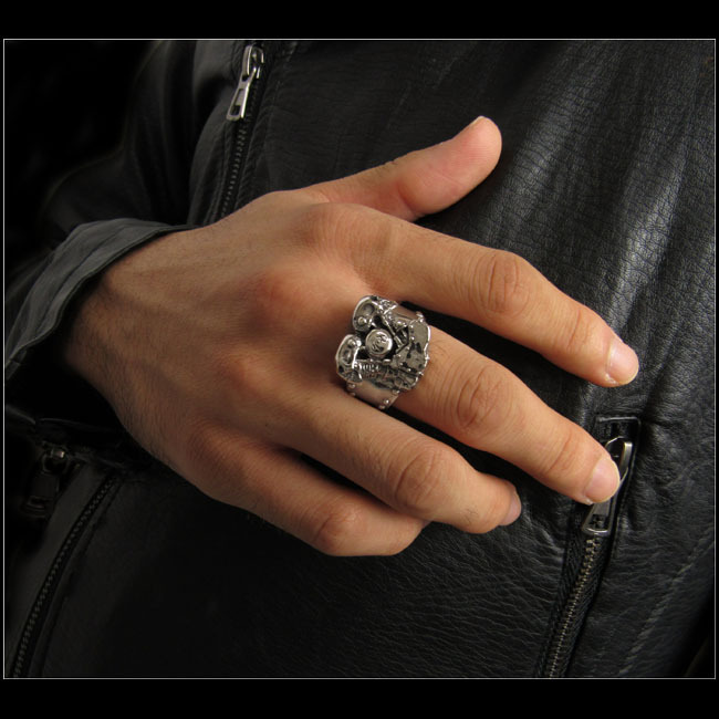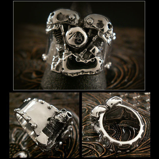 エンジンのヘッド部分にスカルがあしらわれたユニークなシルバー製リングです。