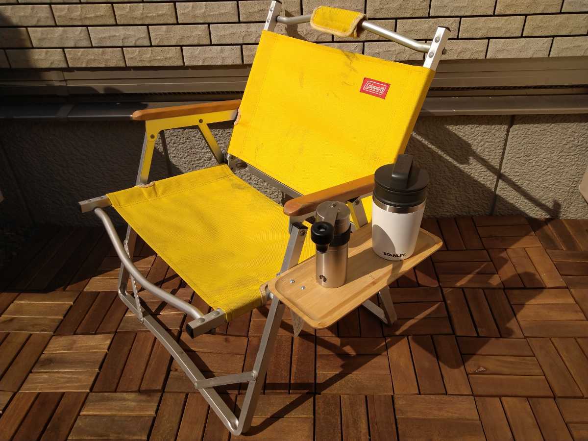 コールマン コンパクトフォールディングチェアに簡単に取り付けできるサイドテーブルです。
