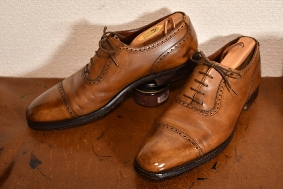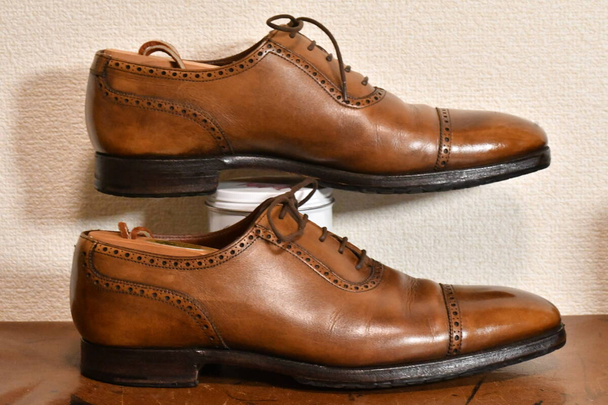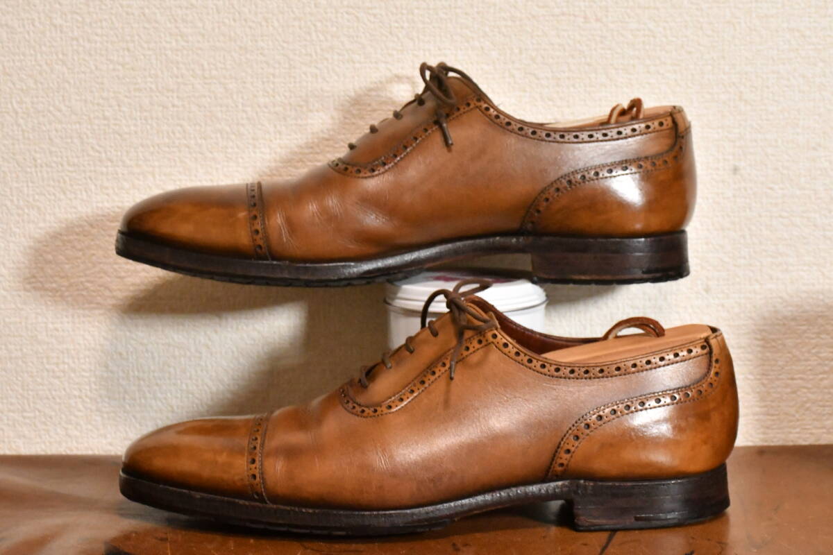 アッパーは明るめのブラウンで、特にネイビーと相性の良いカラーです。セットアップと合わせてビジネスシーンにぴったりですが、綺麗目カジュアルスタイルに合わせてもかっこいいと思います。