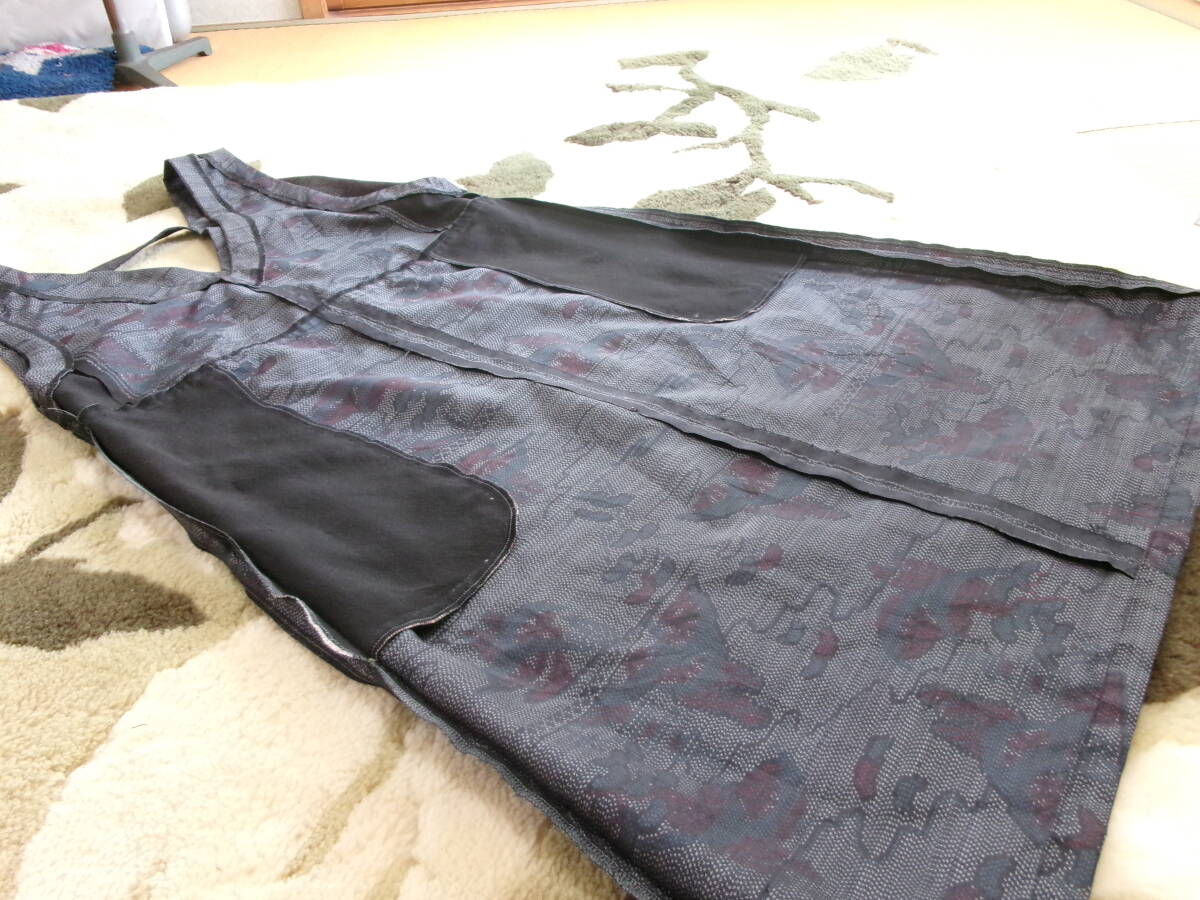 ポケット口、身頃脇に正絹の黒地を入れ込んで身幅を細く見えるように仕立てました。