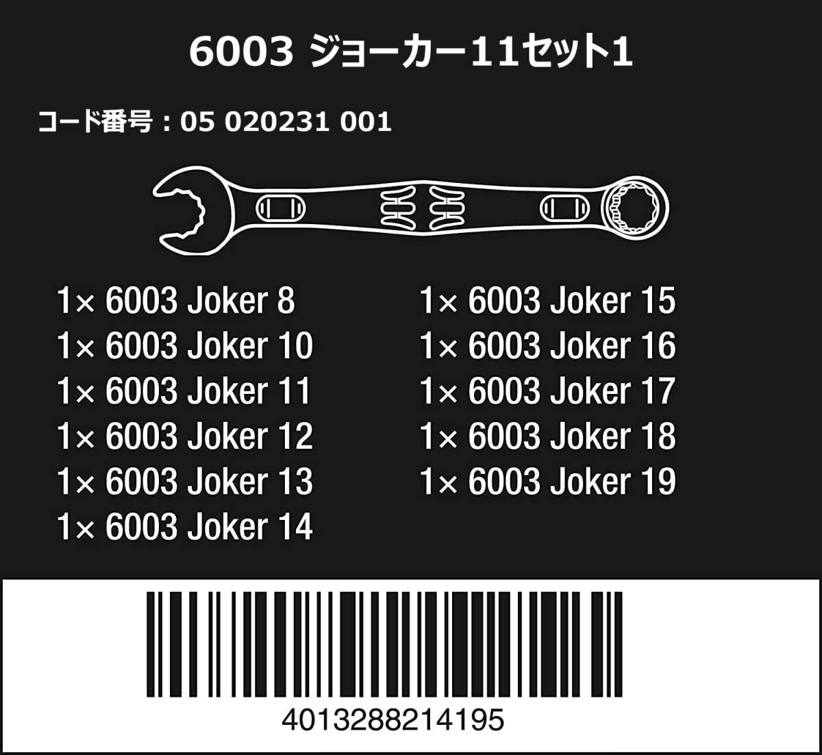 品名:Wera 6003 コンビネーションスパナ Joker 11本セット