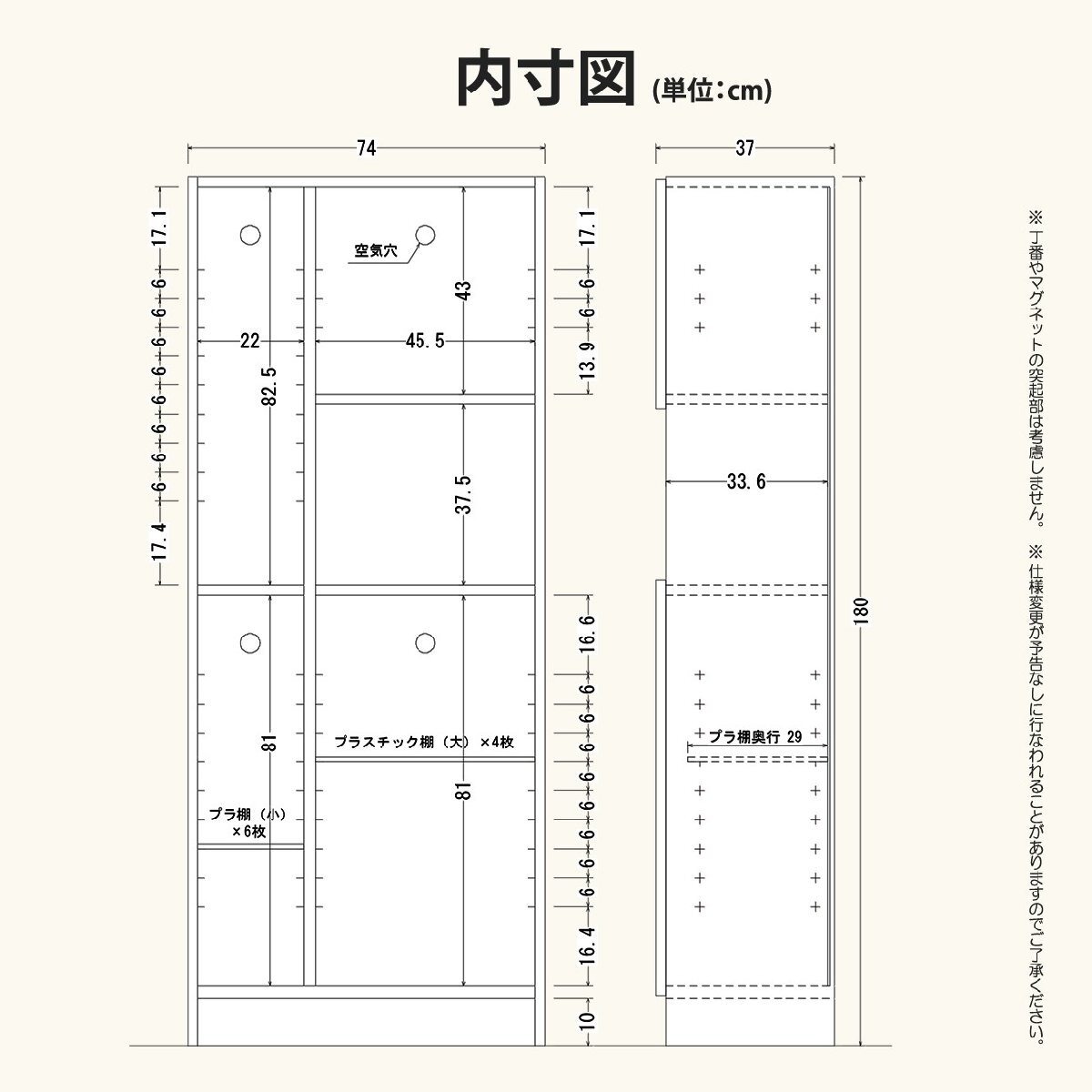 商品サイズ本体:幅74×奥行37×高さ180 cm