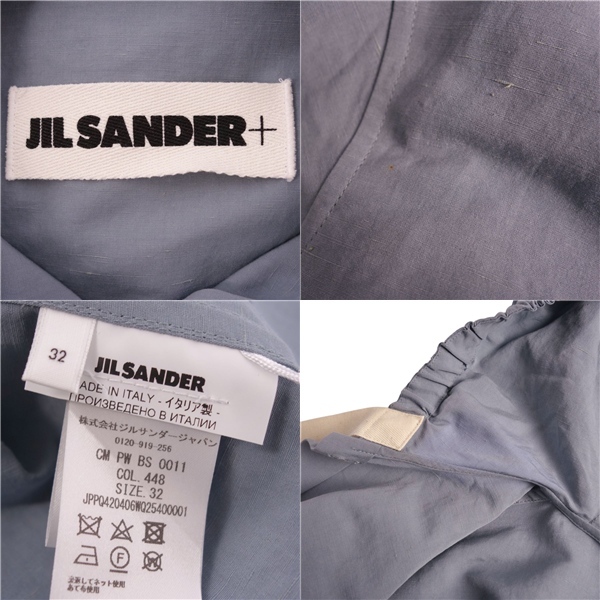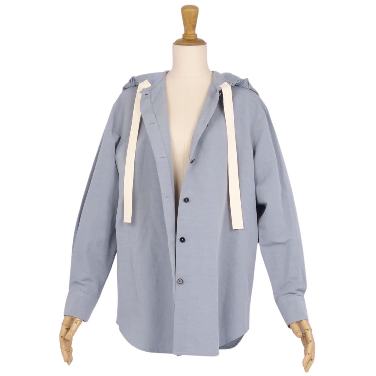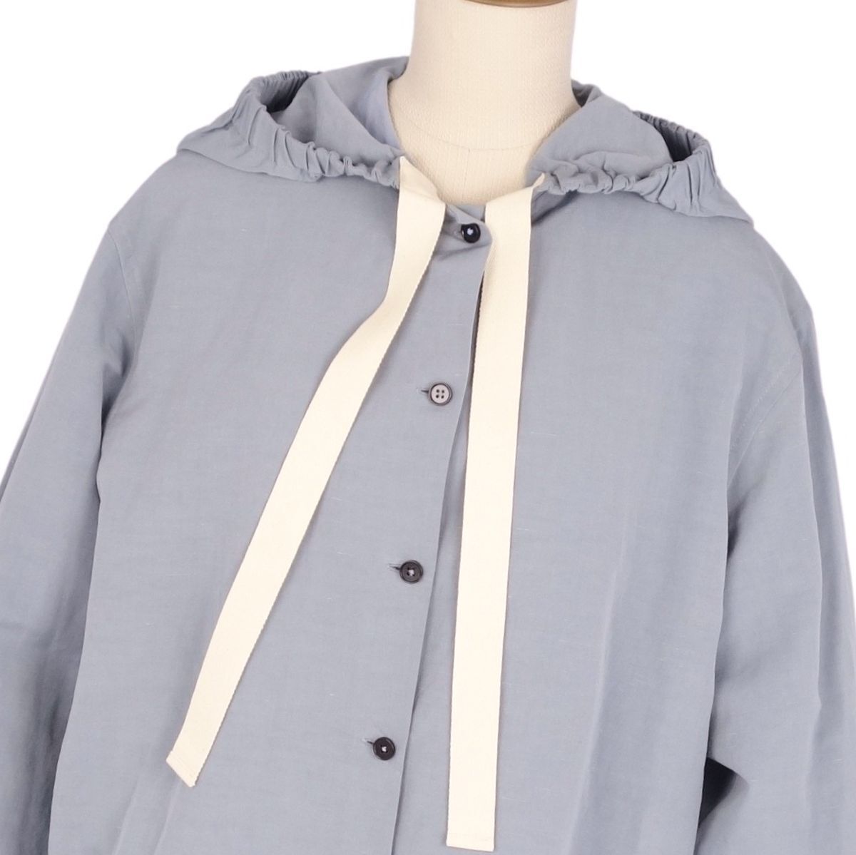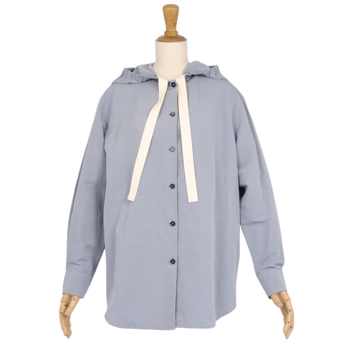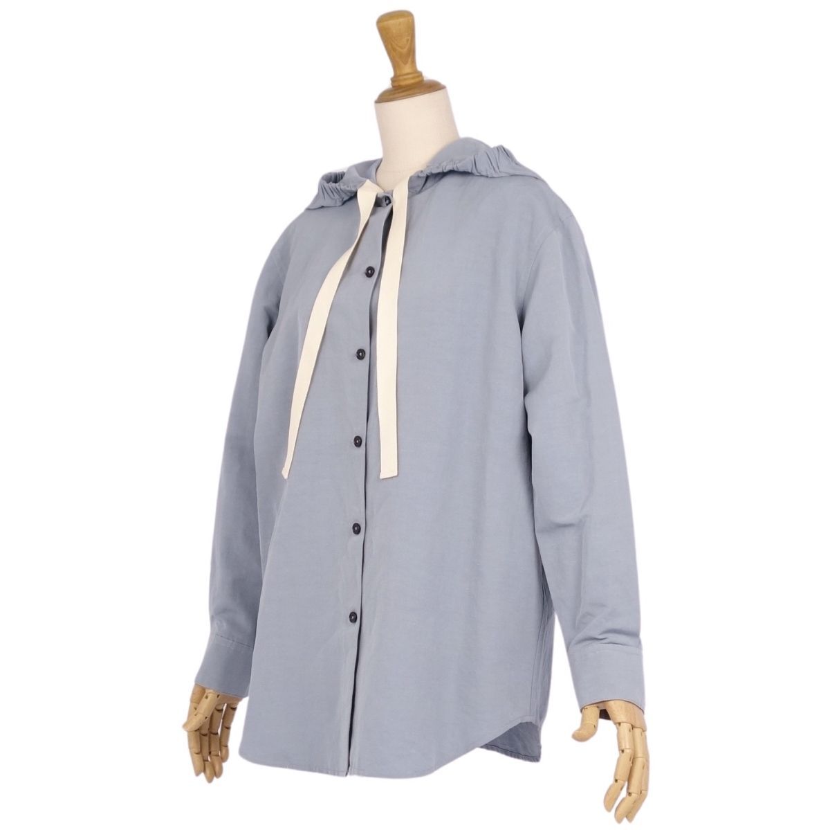 | 美品 ジルサンダー JIL SANDER シャツ ブラウス フード付き コットン リネン トップス レディース 32(S) ブルーグレー |