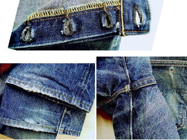 ●初期のギャラ入り紙パッチ表記 ●アウトシーム赤耳 ●BIG E ●オフセット・センターループ ●フロントVステッチ ●隠しリベット ●コインポケット赤耳 ●ウエスト上部・シングルステッチ etc...