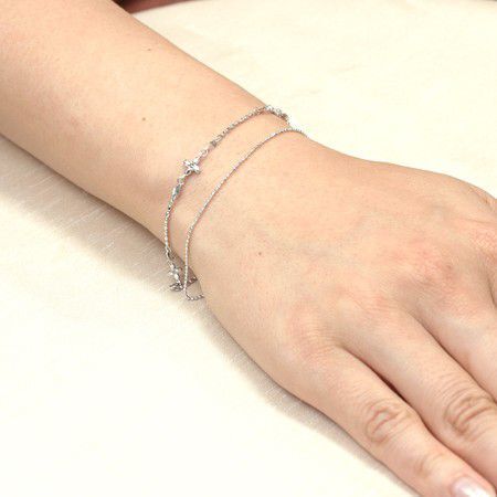 ホワイトゴールドのフラワーモチーフは、どこか繊細でピュアな雰囲気。2本のチェーンでボリュームがあり、手首をキレイに見せてくれます。