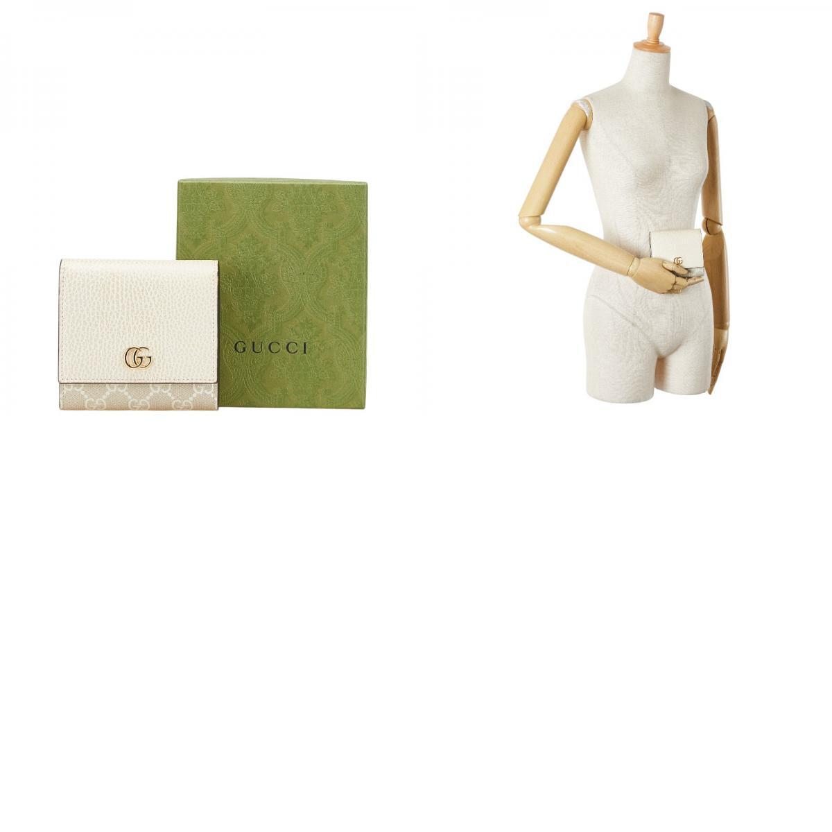 グッチ GGスプリーム GGマーモント 二つ折り財布 598587 ベージュ ホワイト PVC レザー レディース GUCCI 【中古】