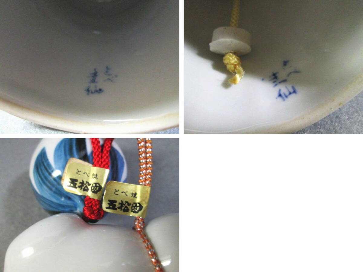 <商品名> 砥部焼 とべ焼 呼び鈴 土鈴 4点 圭仙 五松園 陶磁器 焼き物 置物 ベル 鈴 鐘
