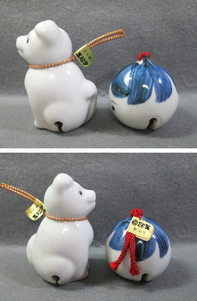 ・砥部焼の呼び鈴、土鈴など4点まとめてになります。