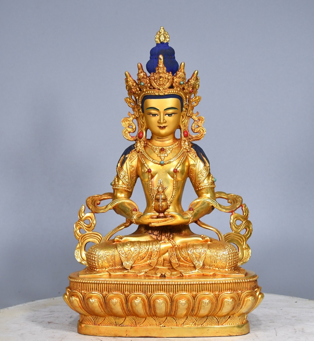 *珍品旧蔵* 大明 永樂年製 藏傳仏像 描彩長壽仏 胎體厚重 通體塗金 仏像 銅製 唐物 中国古玩 仏教古美術 供養品 H44