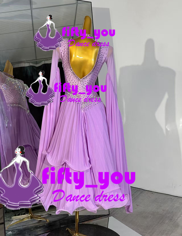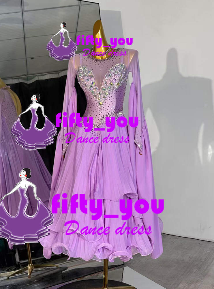 新品fifty_youレディース社交ダンスドレス  モダンドレス サイズオーダー  スタンダードドレス 高級品 輝きストーン飾り パープル