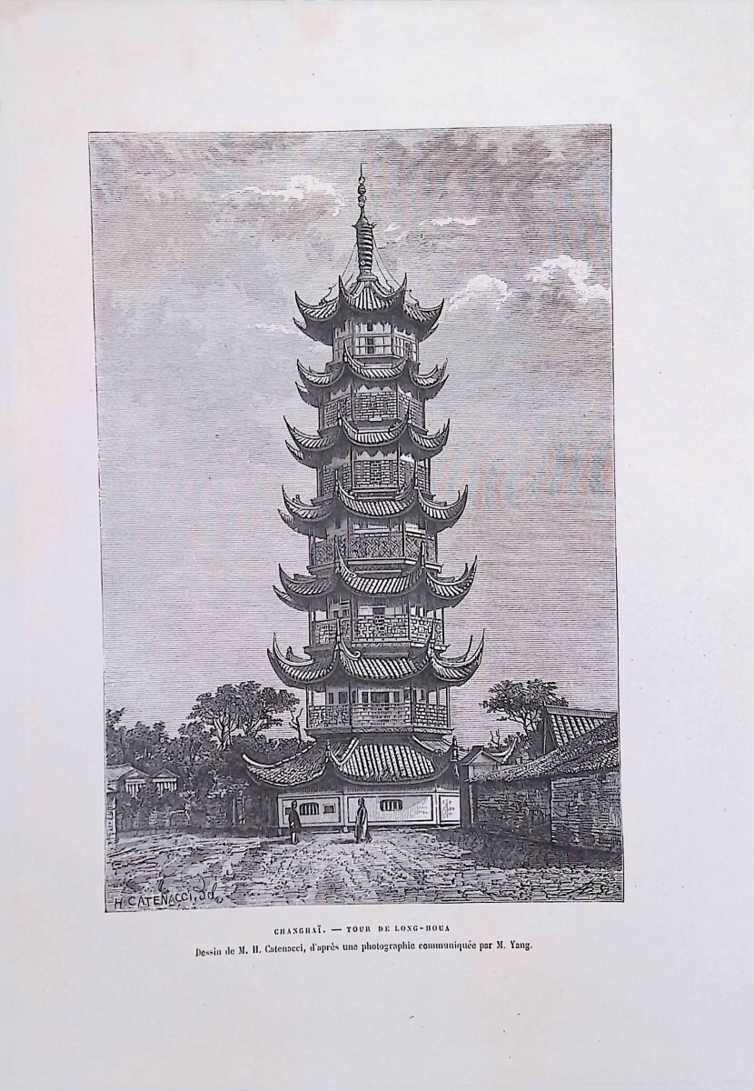 1882年にパリで刊行された地理学者Elisee Reclus の著作の挿絵のオリジナル木版画です。サイズは、18.5cmx26.5cmで、裏は白紙です。少し古色やシミがあります。 アジア史、中国史、民俗学、歴史史料、地理学
