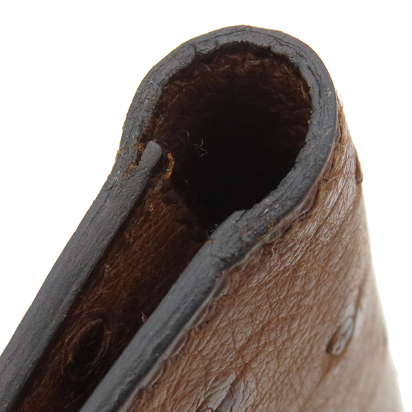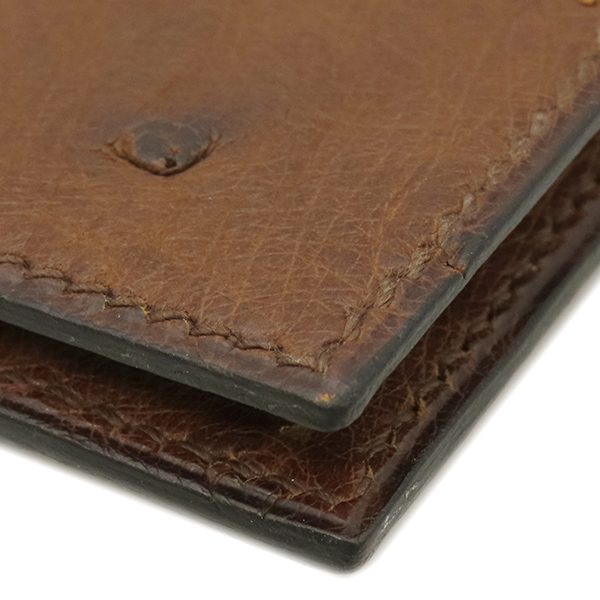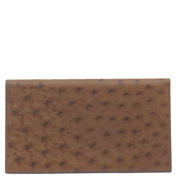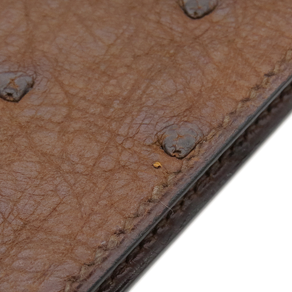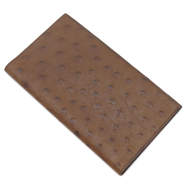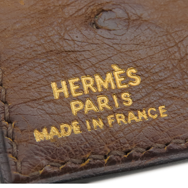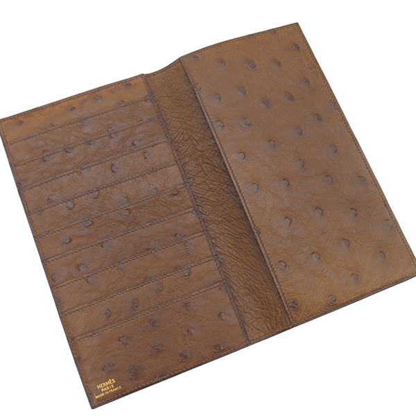 エルメス 長財布 札入れ オーストリッチ ブラウン 茶 二つ折り財布 中古