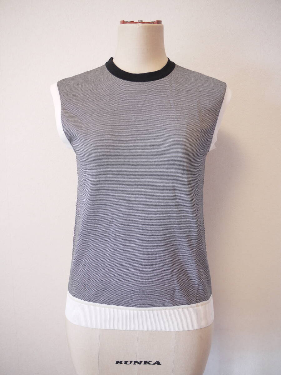 WELLNESS ウェルネス ノースリーブニット 黒×白 クリーニング済