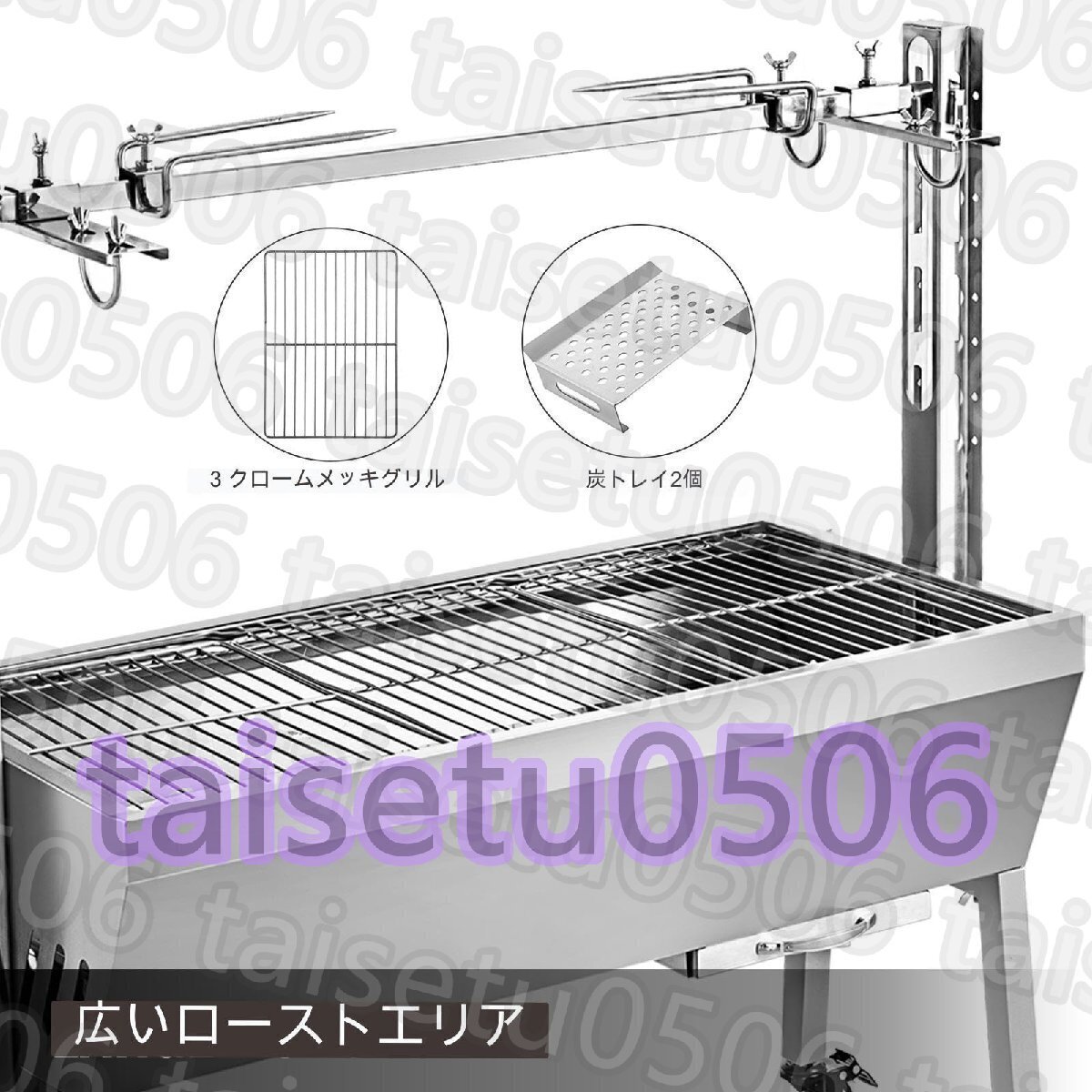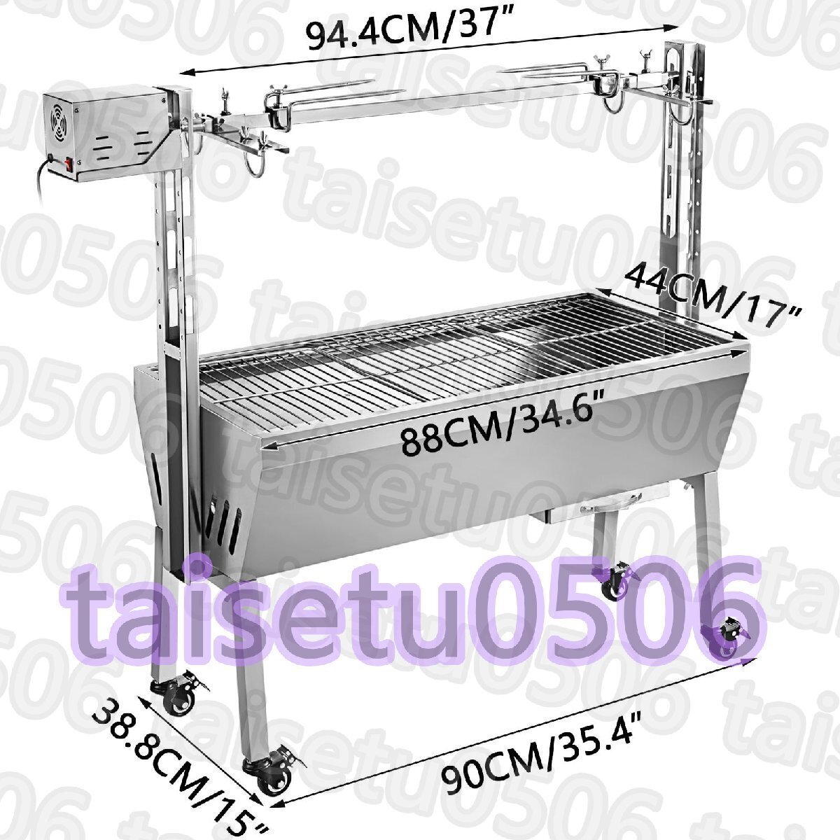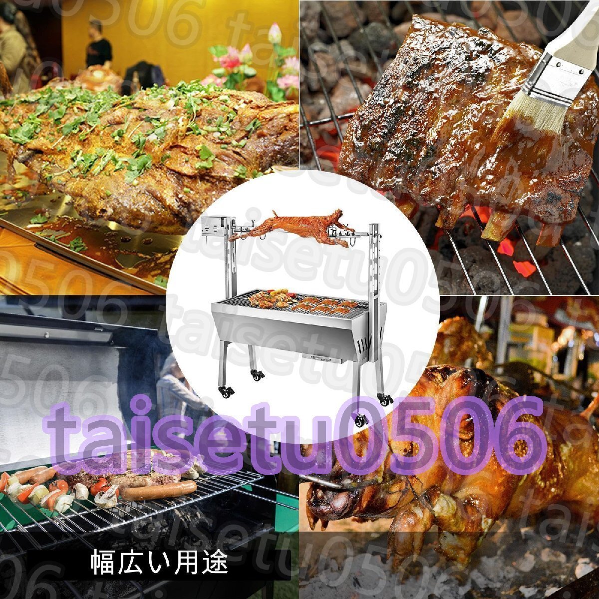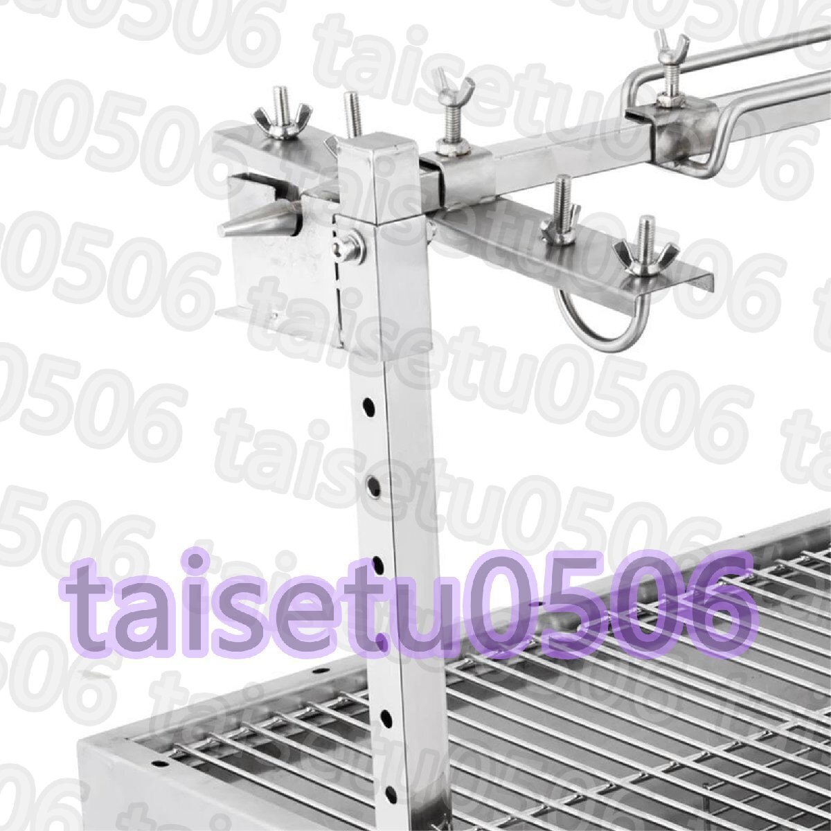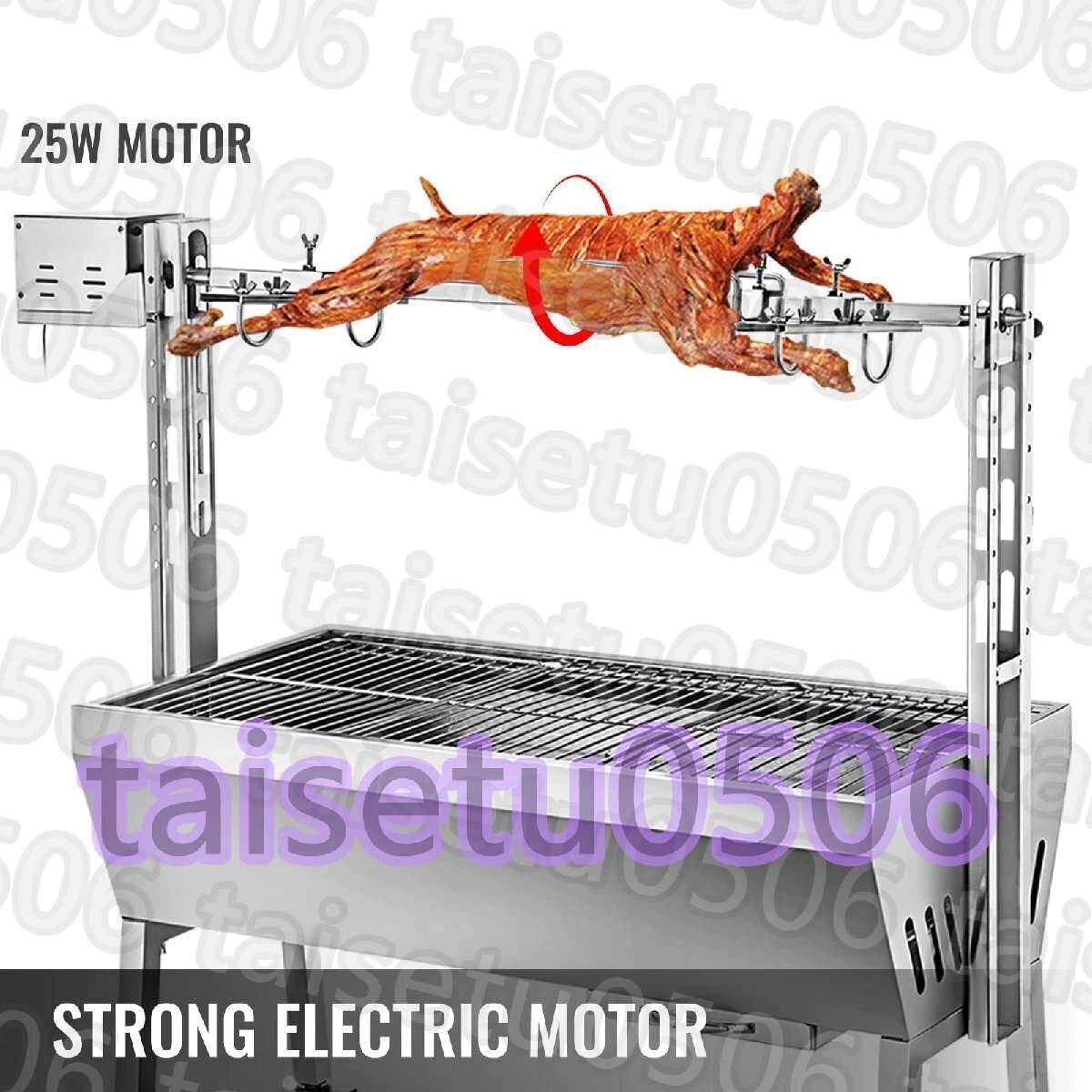 回転型 丸焼き機自動子豚バーベキューグリル、ステンレス鋼炭ロースト子羊脚ストーブバーベキューマシンバーベキュートーストローストピッグモーターフロントガラスロティサリーキットユニバーサル交換クイックインストールポータブルスピットグリル屋外キャンプバーベキュー3つの高さ調節可能な長さ調理 (シルバー)
