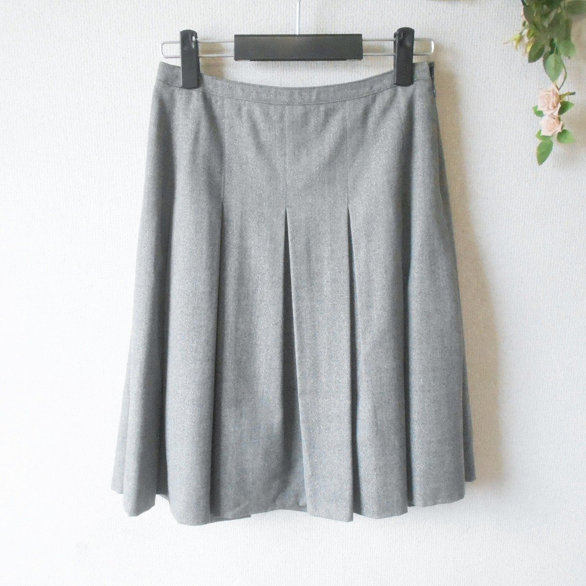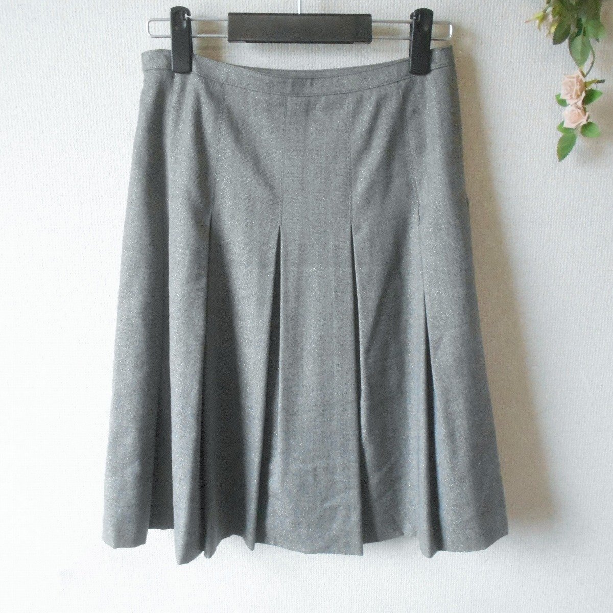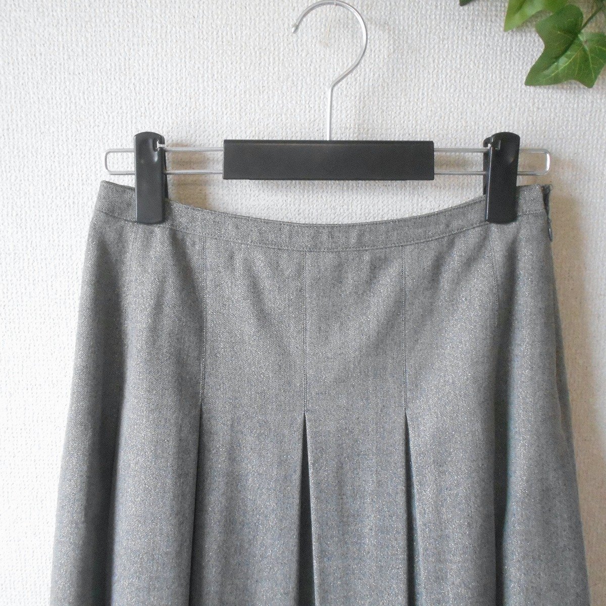 【ポイント】三陽商会、バーバリーロンドンのスカートになります。お色はグレー系で全体に細かいラメが入った秋冬を中心に着ていただけるお品です。プリーツ(タック?)が使用された、とっても素敵なデザインです。