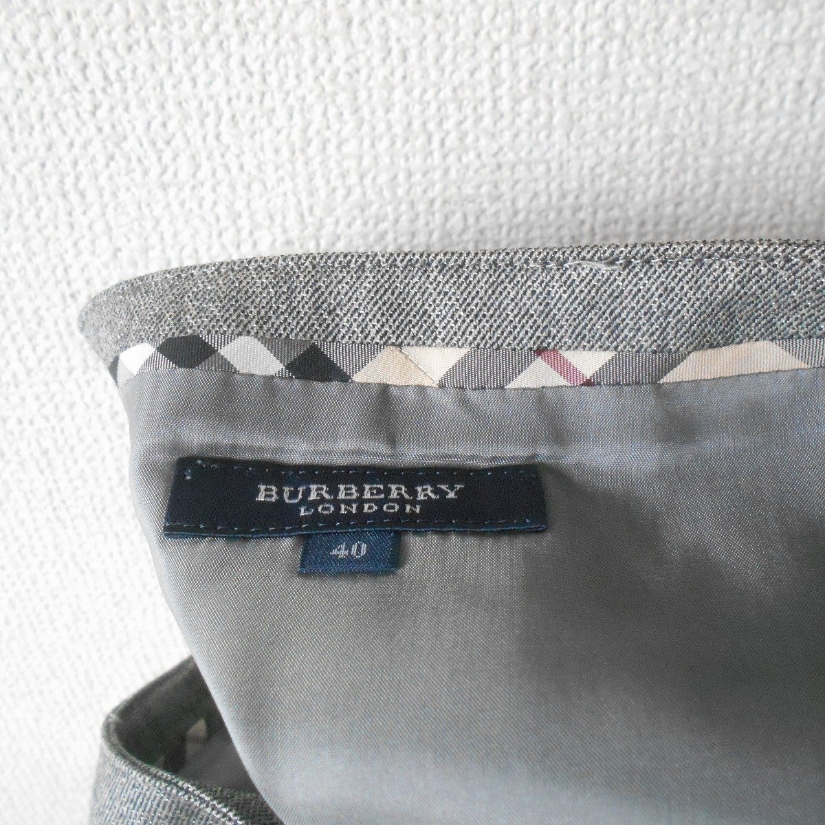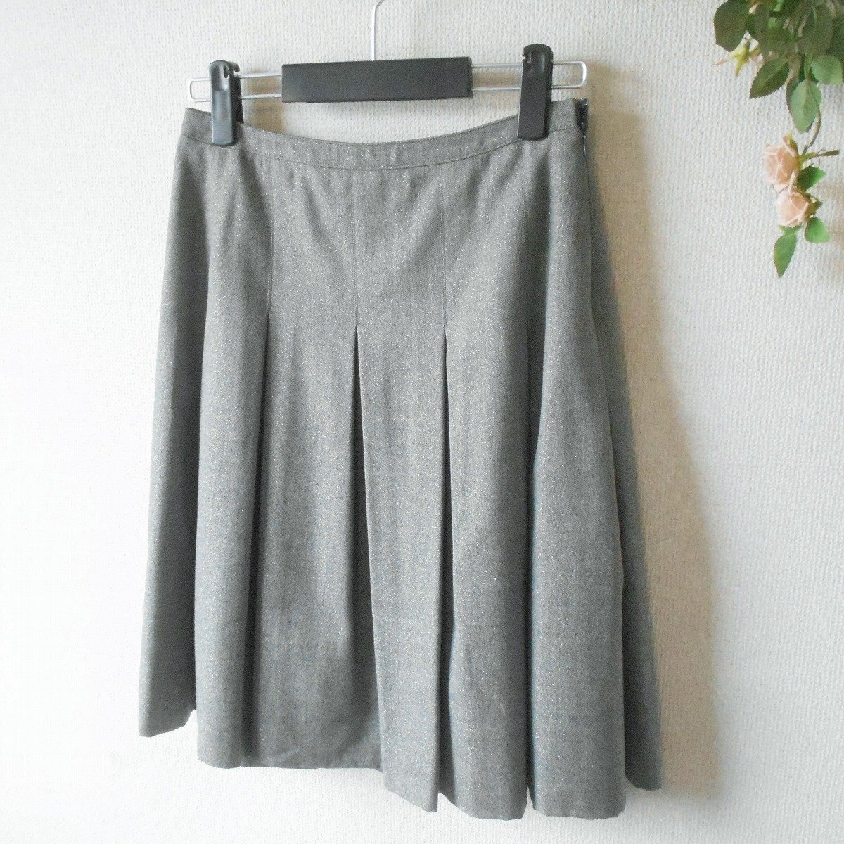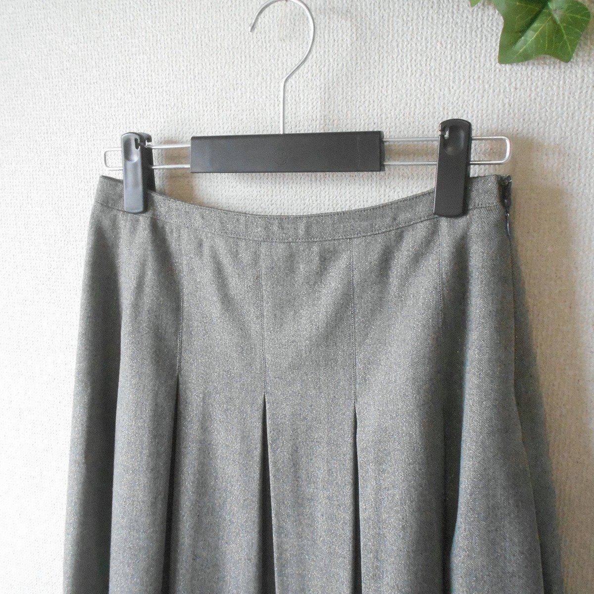 【ポイント】三陽商会、バーバリーロンドンのスカートになります。お色はグレー系で全体に細かいラメが入った秋冬を中心に着ていただけるお品です。プリーツ(タック?)が使用された、とっても素敵なデザインです。