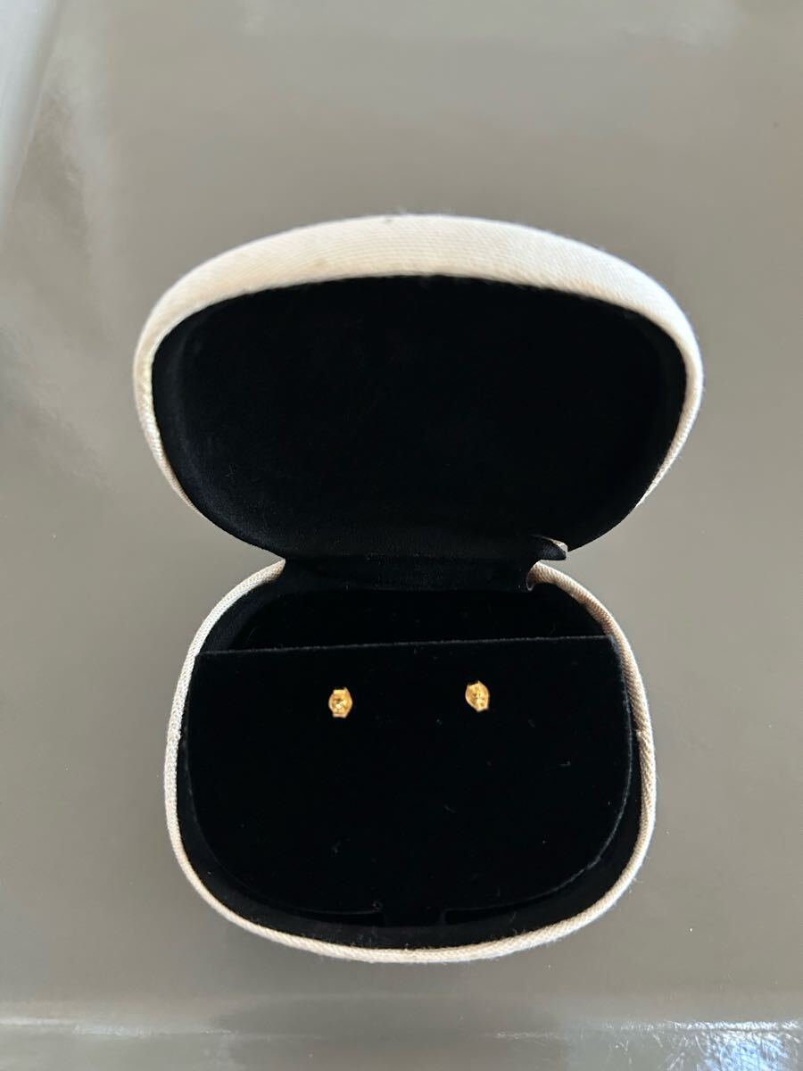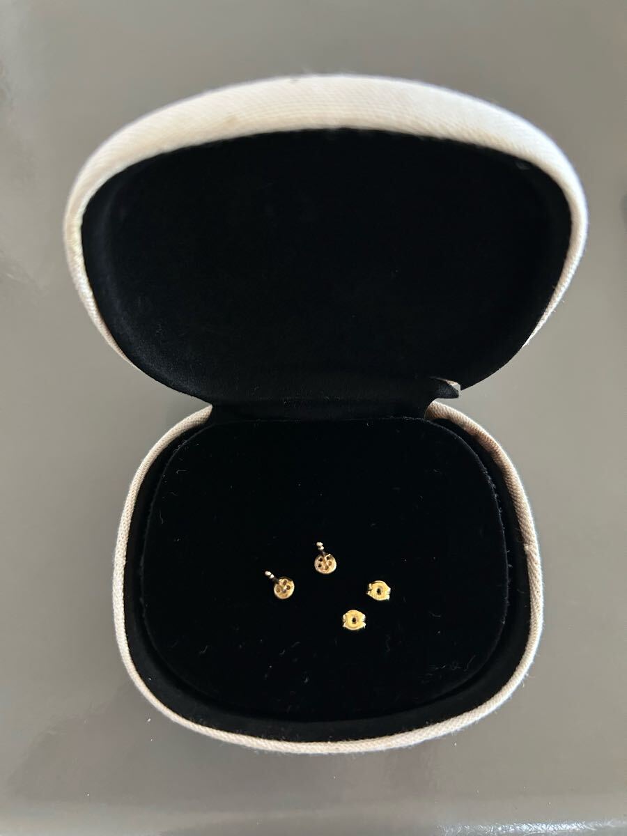 素材はポストとキャッチにK18の刻印があります。メレダイヤが埋め込まれていますので、上品にキラキラと輝きます。現在のmeleeシリーズかと思いますが、公式ホームページでは全く同じものは見つかりませんでした。