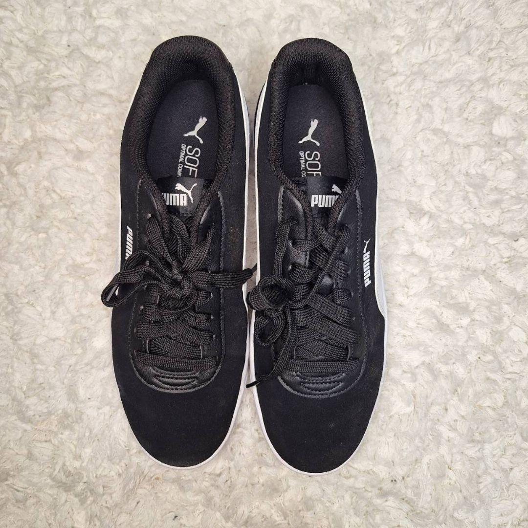 極美品 28㎝◎PUMA プーマ COURT PURE コートピュア スニーカー ランニングシューズ SOFTFOAM ソフトフォーム スエード スウェード 黒 ブラック