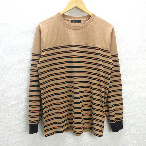 H■ナノユニバース/nano universe ボーダー柄 長袖カットソー ロンT【L】茶/MENS■77【中古】