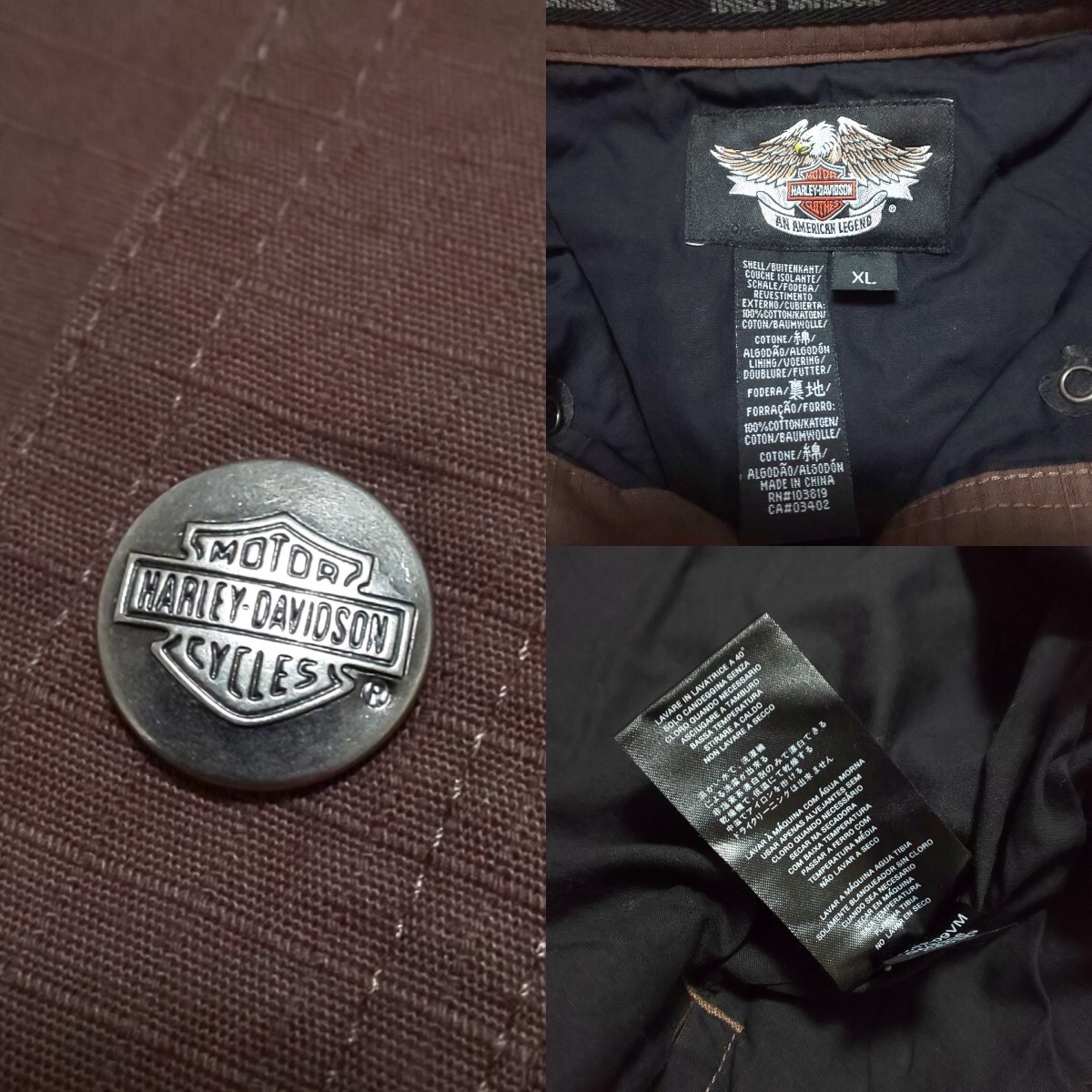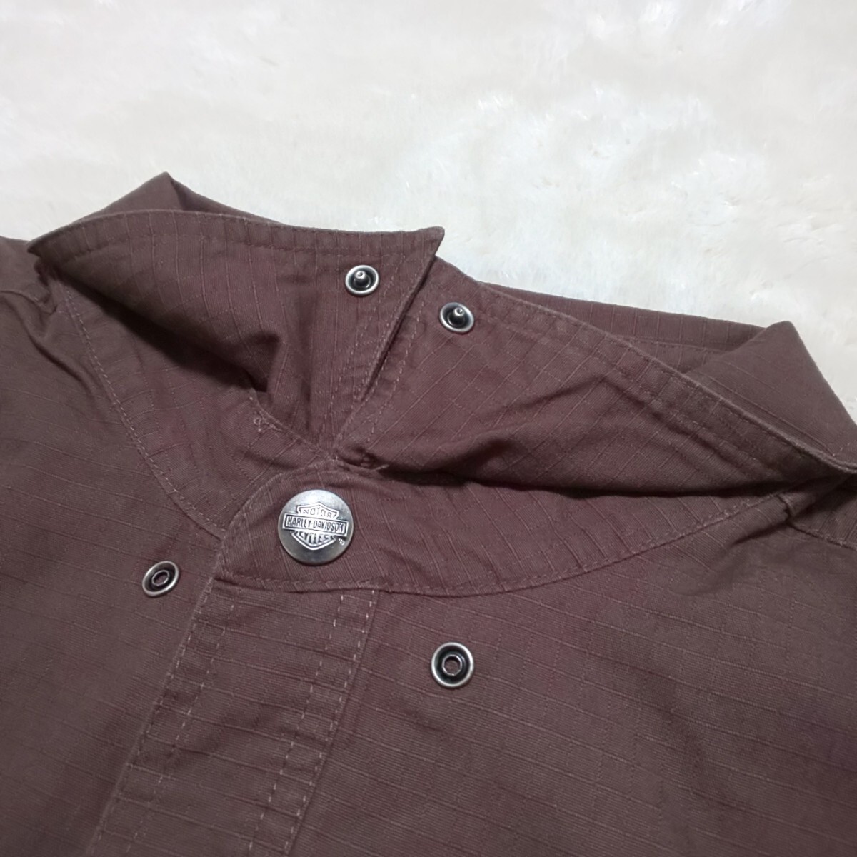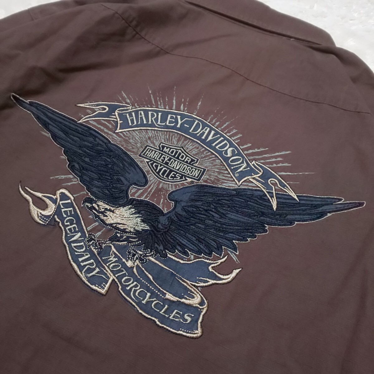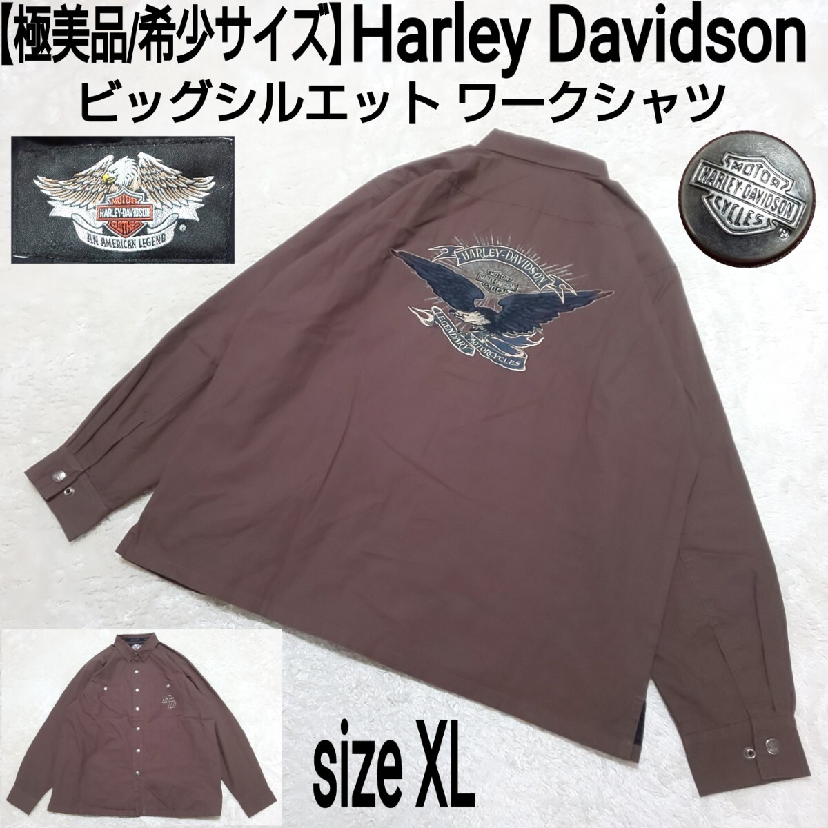 【極美品/希少サイズ】Harley Davidson ハーレーダビッドソン ビッグシルエットワークシャツ 刺繍ロゴ イーグル ブラウン