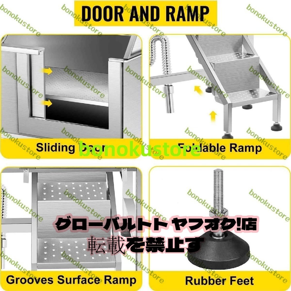 このペット用バスタブには、ペットが簡単にアクセスできるようにスライドドアと階段が装備されています。ステンレス製のシャンプーラックはトイレタリーを置くのに便利で、高圧バスタブ蛇口はシャワーの清掃に便利です。人間工学に基づいたデザインで、ペットの入浴やケアに最適です。仕様:色: シルバー材質: ステンレススチール寸法: 34"×19.3"×50" (87×49×128cm)耐荷重: 約 27kg/70lb梱包寸法: 37.4×22.44×20.47" (95×57×52cm)総重量: 76lb (34.5 kg)梱包内容:ペットグルーミングバスタブ x 1バスタブ蛇口 x 1温水・冷水ホース x 1伸縮式階段 x 1