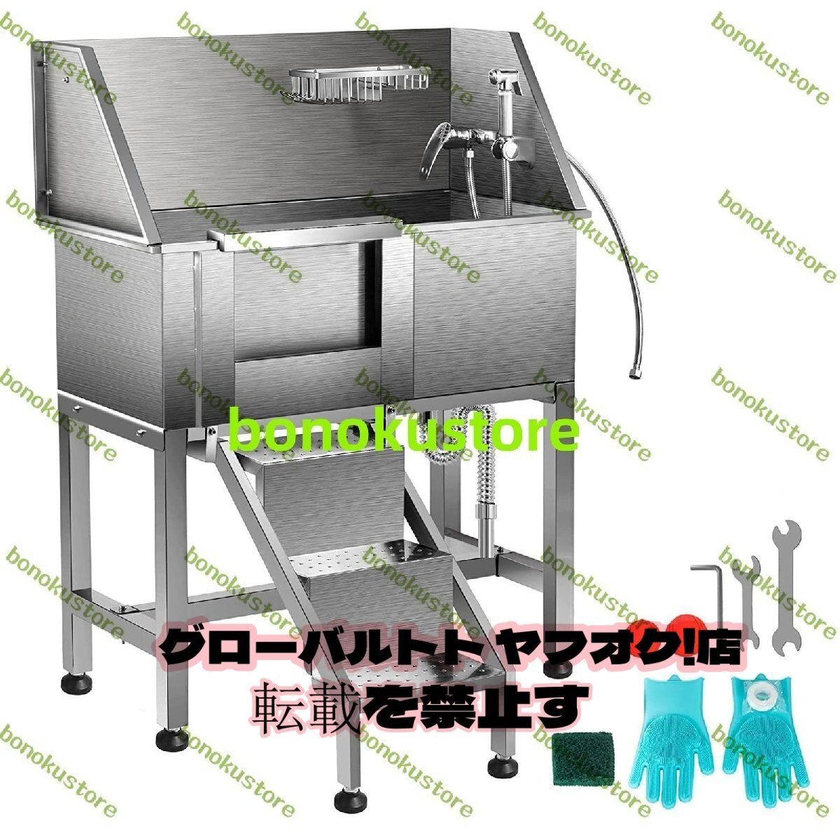 86cm 犬用洗浄ステーション、プロ仕様のステンレススチール 犬用バスタブ グ、蛇口、豊富なアクセサリー、大型、中型、小型ペット用犬用バスタブステーション