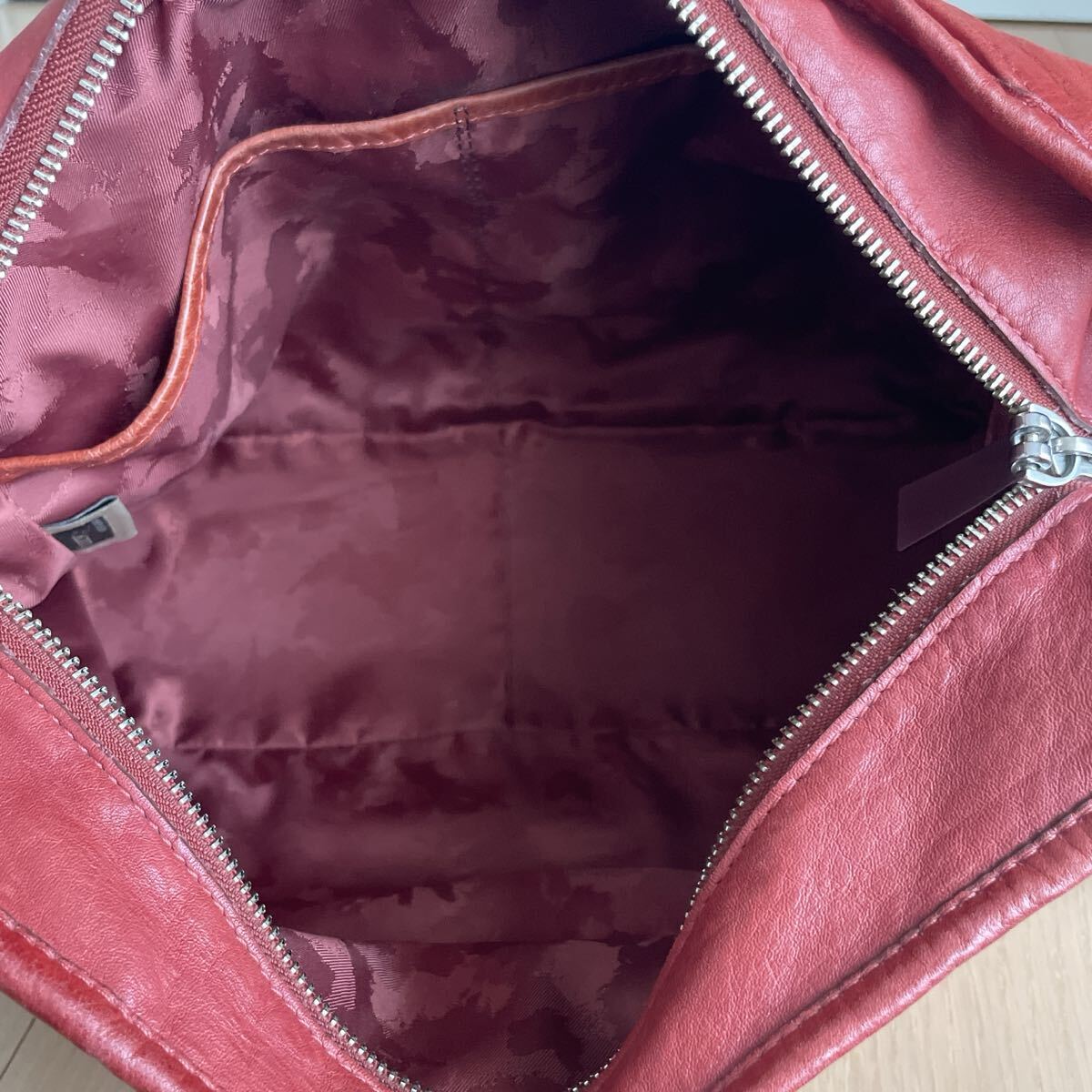そのため、同デザインで大と小の2サイズをご用意しました。こちらは大きいサイズになりまして、お財布や携帯電話、自宅の鍵といった日常の携行品が余裕をもって収納可能。