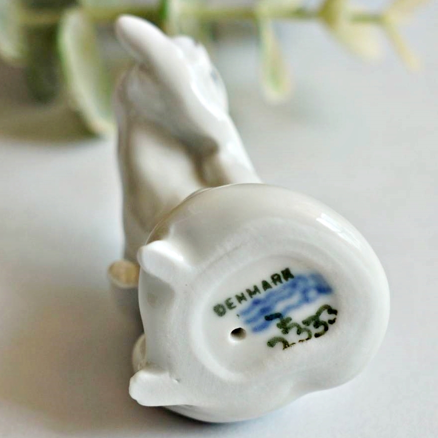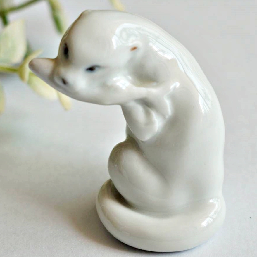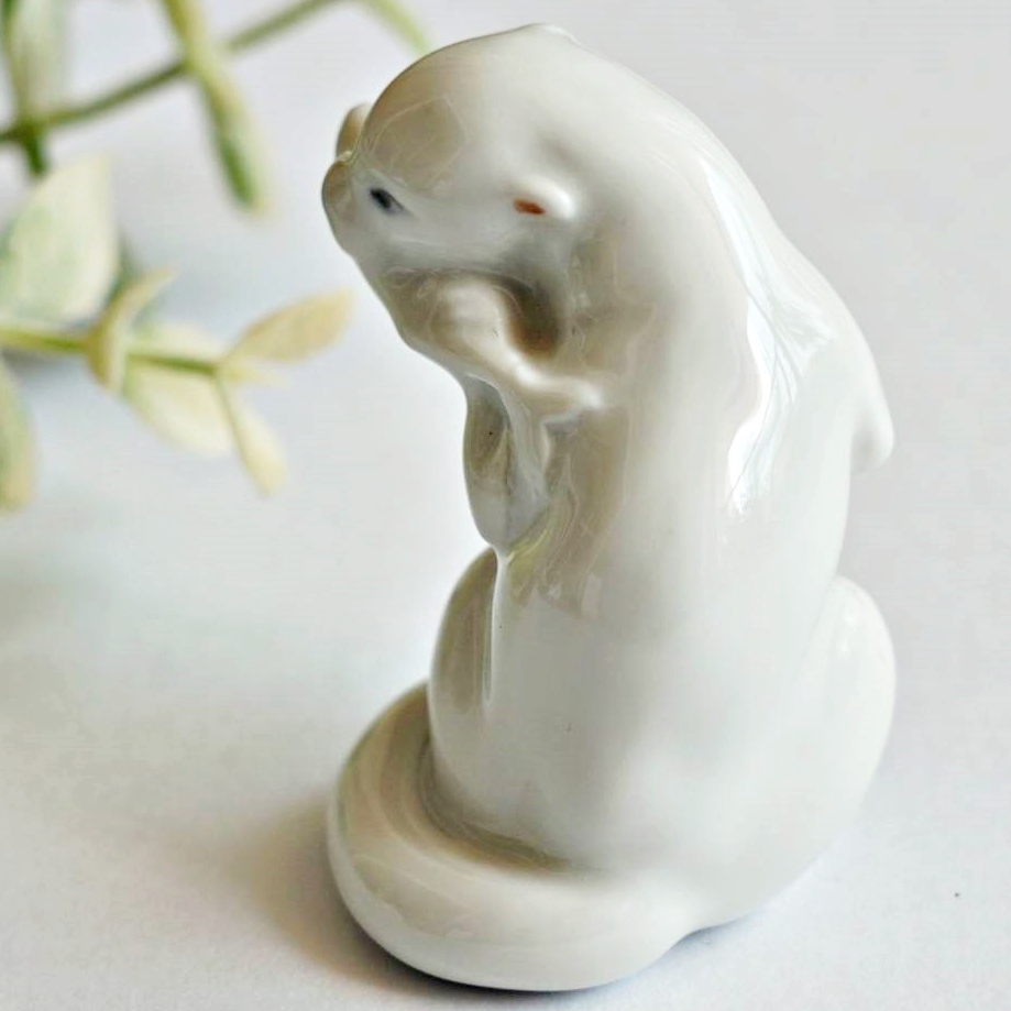希少な白色のカワウソです。素焼きではなく、白色に着色され、釉薬の施されたフィギュリンです。
