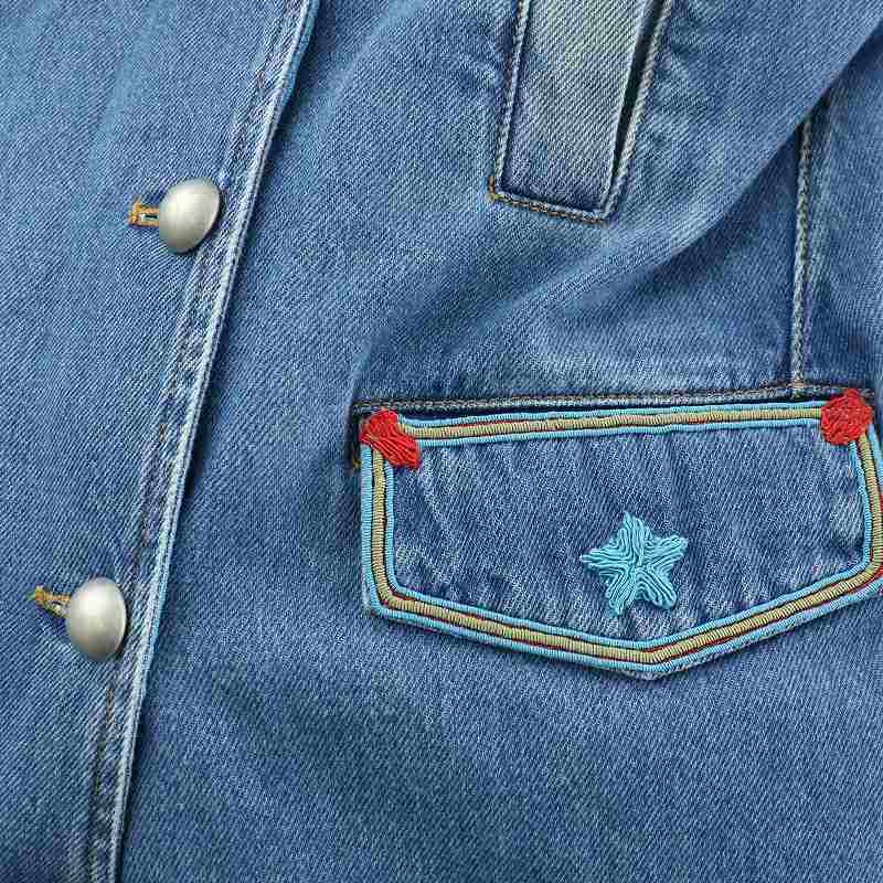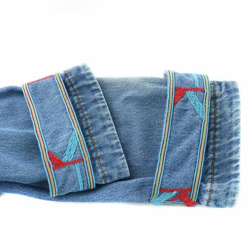 未使用品 エルマノシェルビーノ ERMANNO SCERVINO デニムジャケット コート ハーフ 刺繍 タグ付き 48 XL 青 ブルー