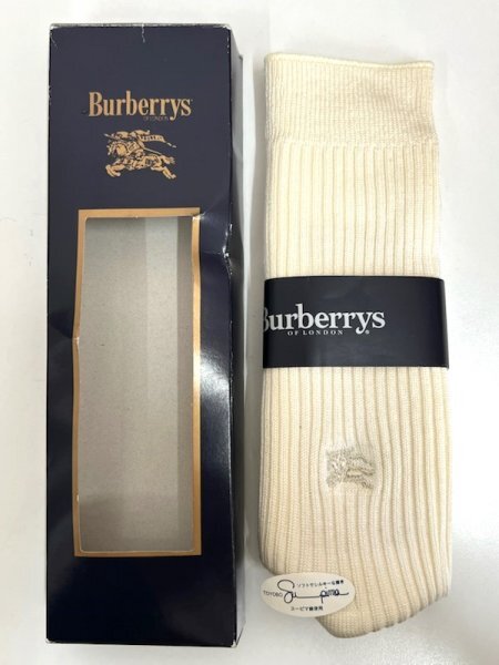 | 【丸-405】◆Burberrys[バーバリー]メンズ ソックス◆表記サイズ25~27cm/クリーム色系◆靴下/紳士◆※箱に難あり 未使用保管品◆KT |