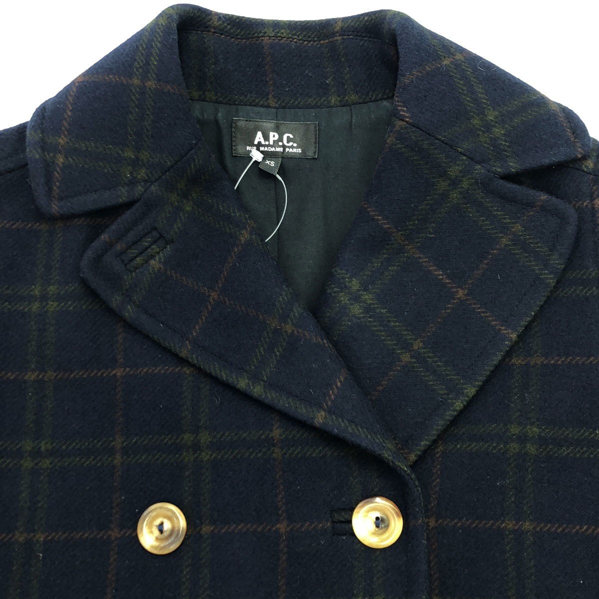 A.P.C アーペーセー ウールナイロンチェック柄ダブルジャケット ネイビー XS ITTVXC9AXKJI