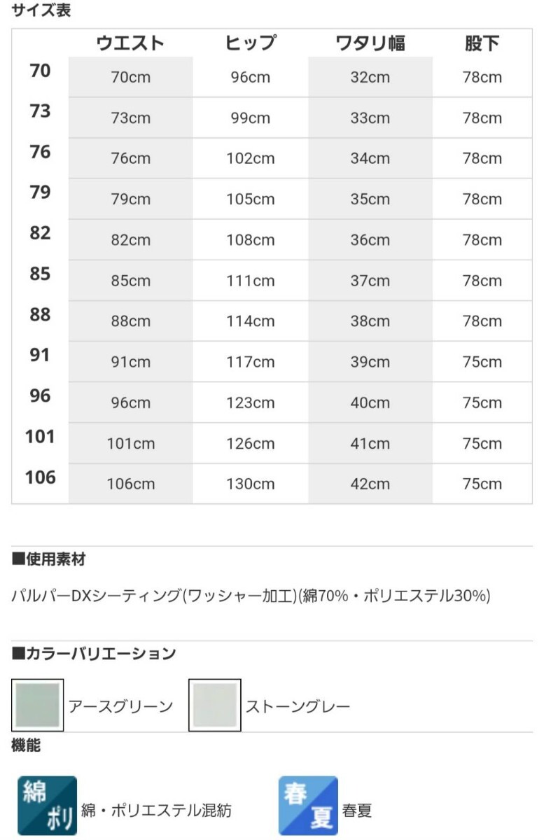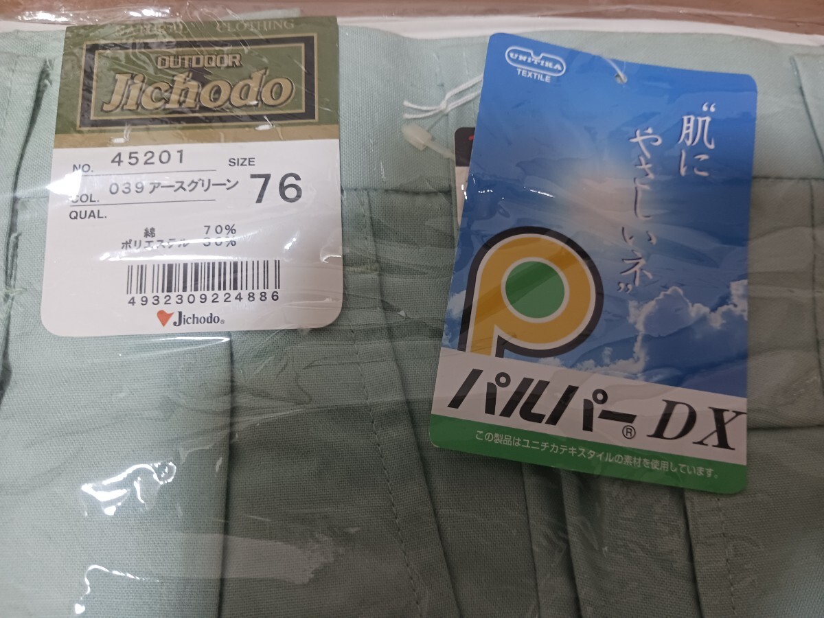3882 自重堂|JICHODO|ツータックパンツ|45201|アースグリーン|W76㎝|春夏|新品未使用|吸汗速乾|パルパーDX|綿ポリ混紡|ズボン|スラックス