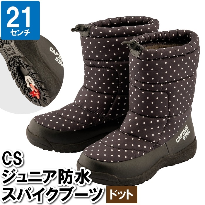 | ドット柄で可愛い! 防滑スパイク付きで滑りにくい! 防水設計(接地面から4cm) 内側は暖かいボア付き。 |