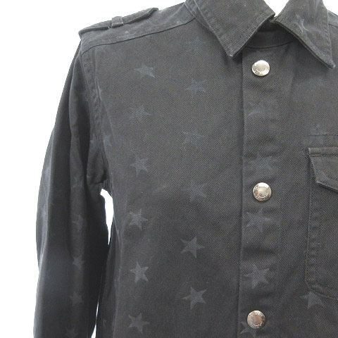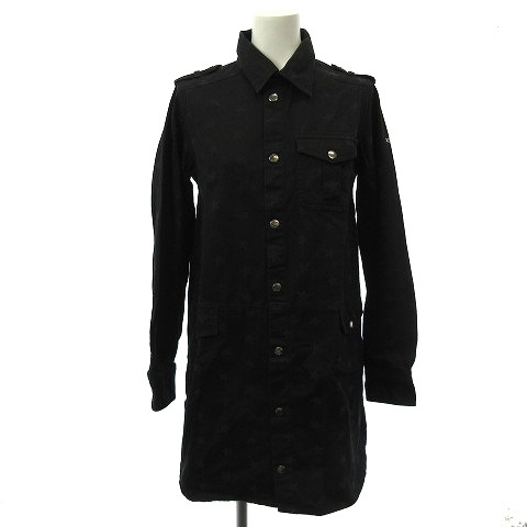 未使用品 エックスガール x-girl デニムシャツ ワンピース ミニ ブラウス スター 星柄 長袖 黒 ブラック 1 レディース