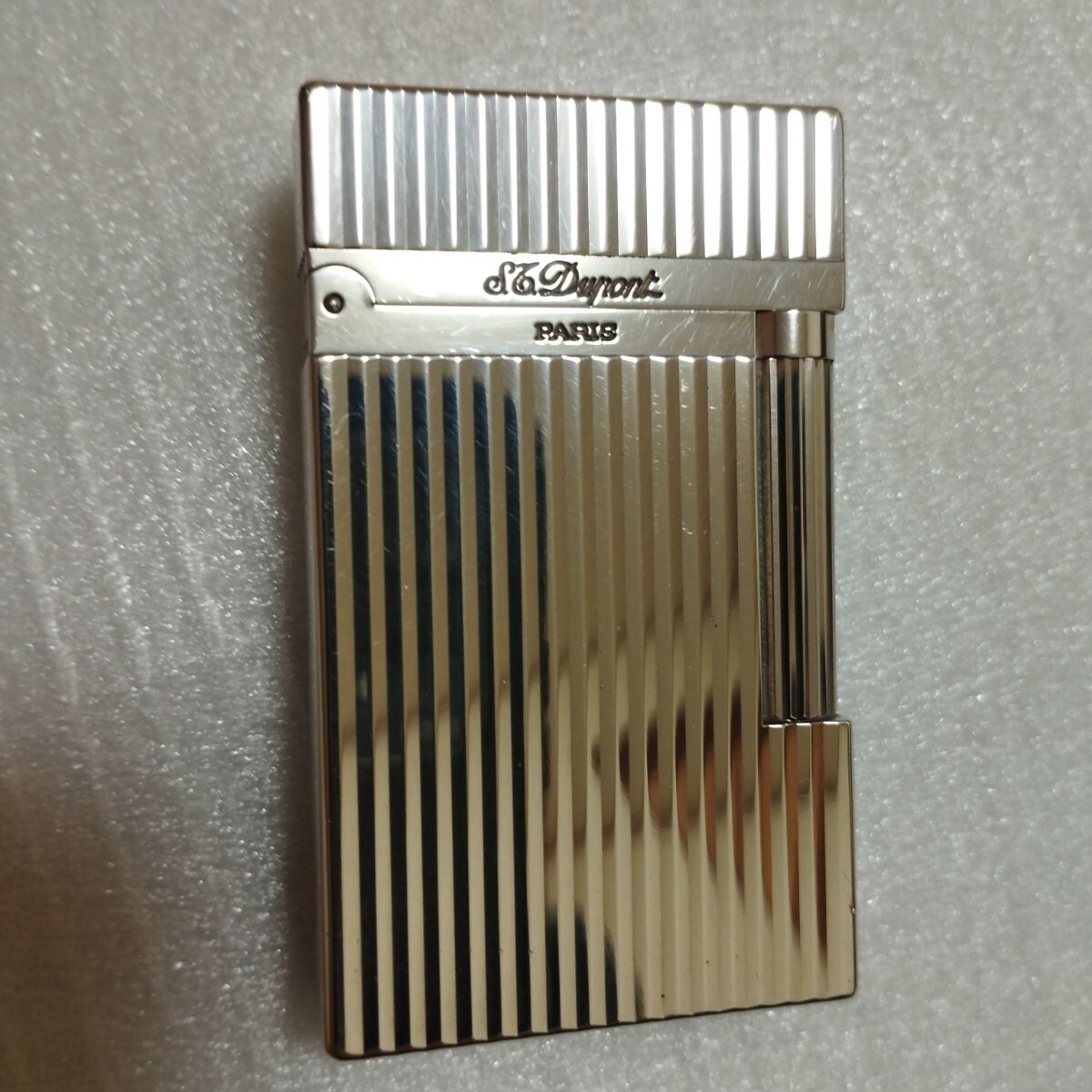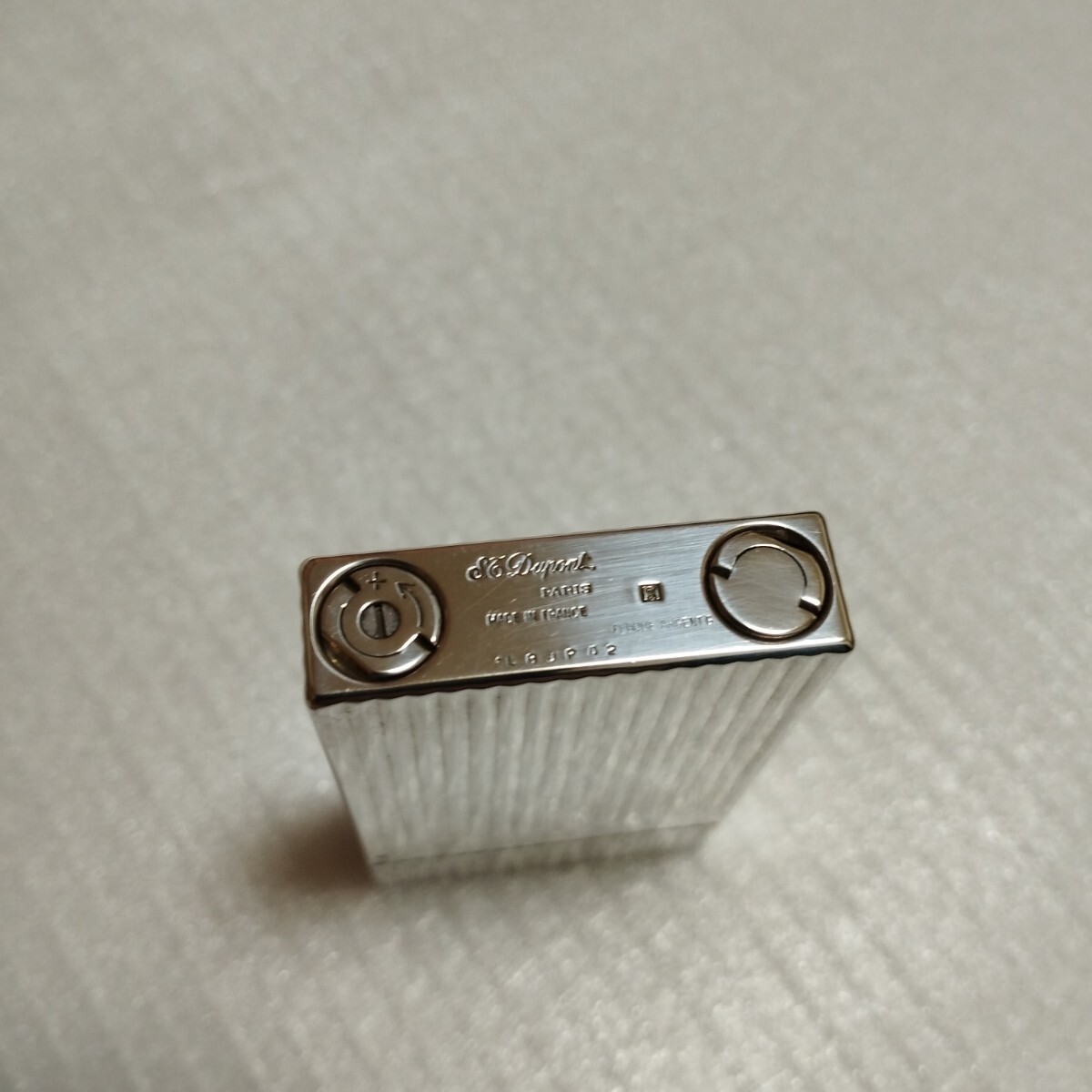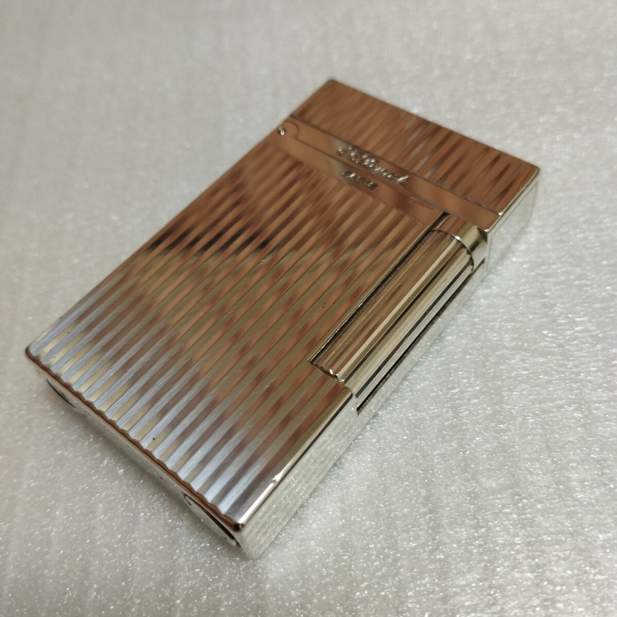 ◆美品 S.T. Dupont デュポン LINE2 ライン2 モンパルナス ストライプ ローラー ガス ライター シルバー 銀 喫煙