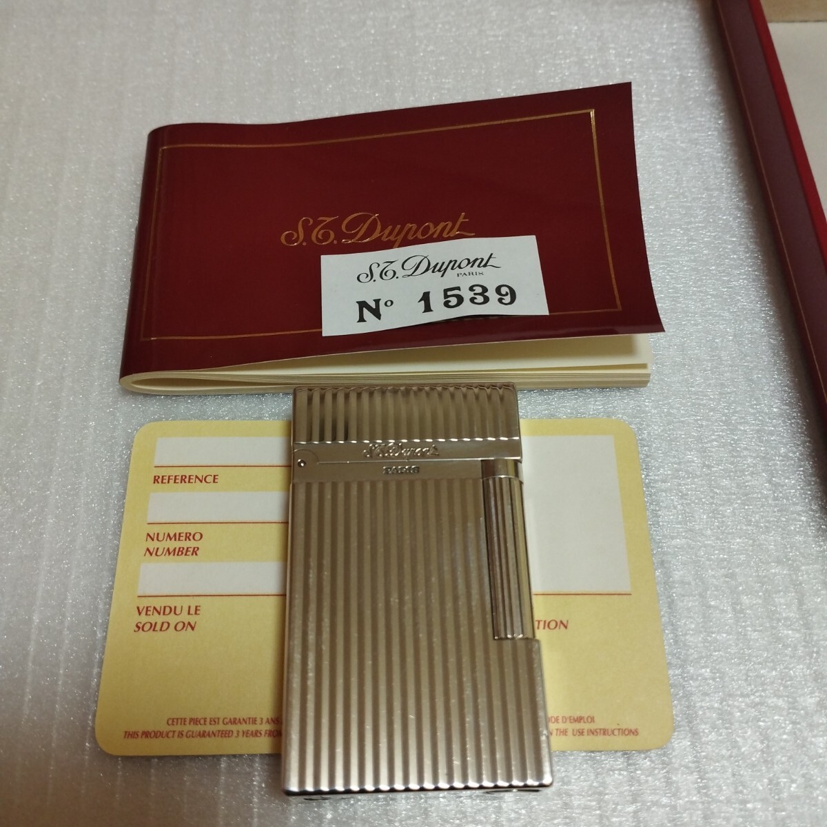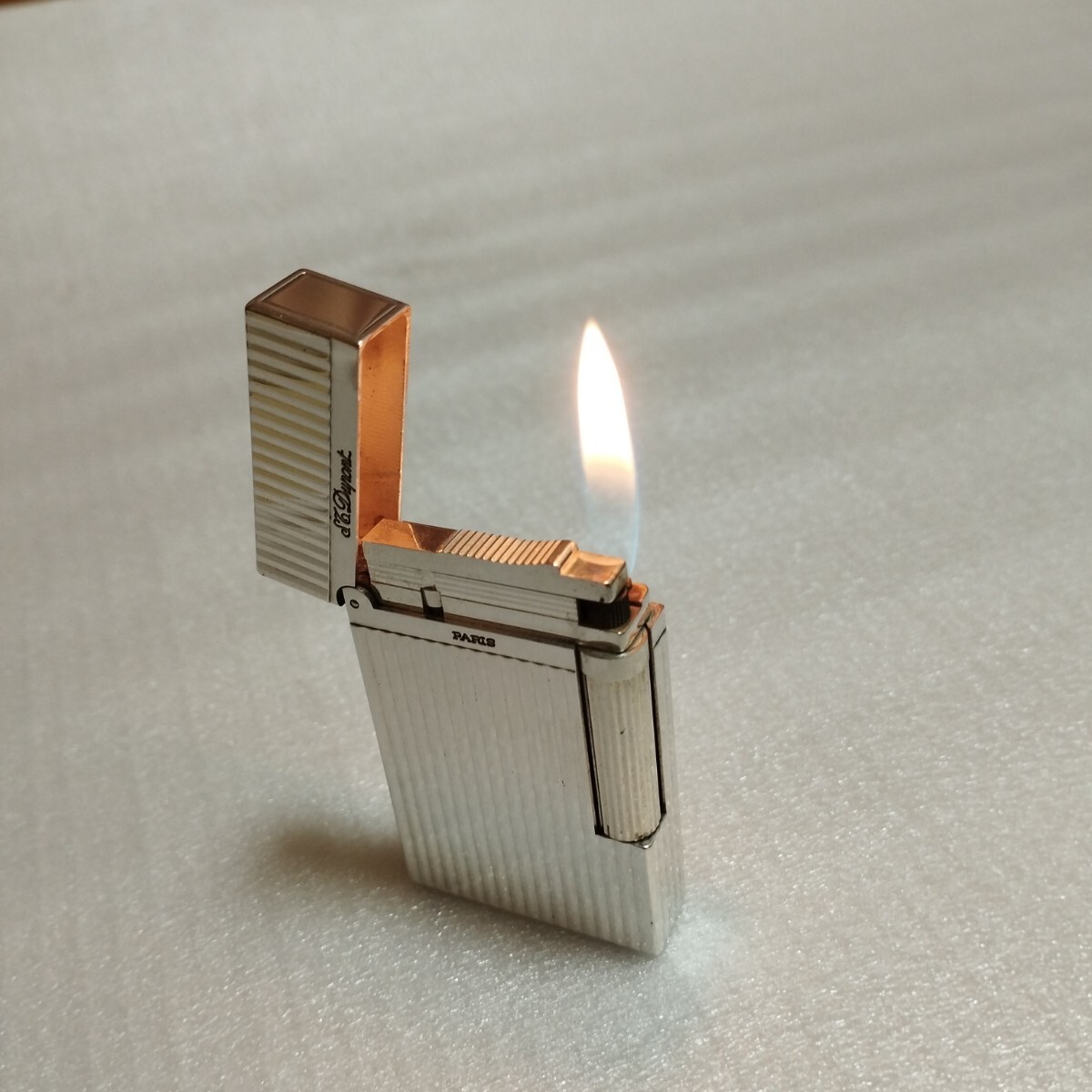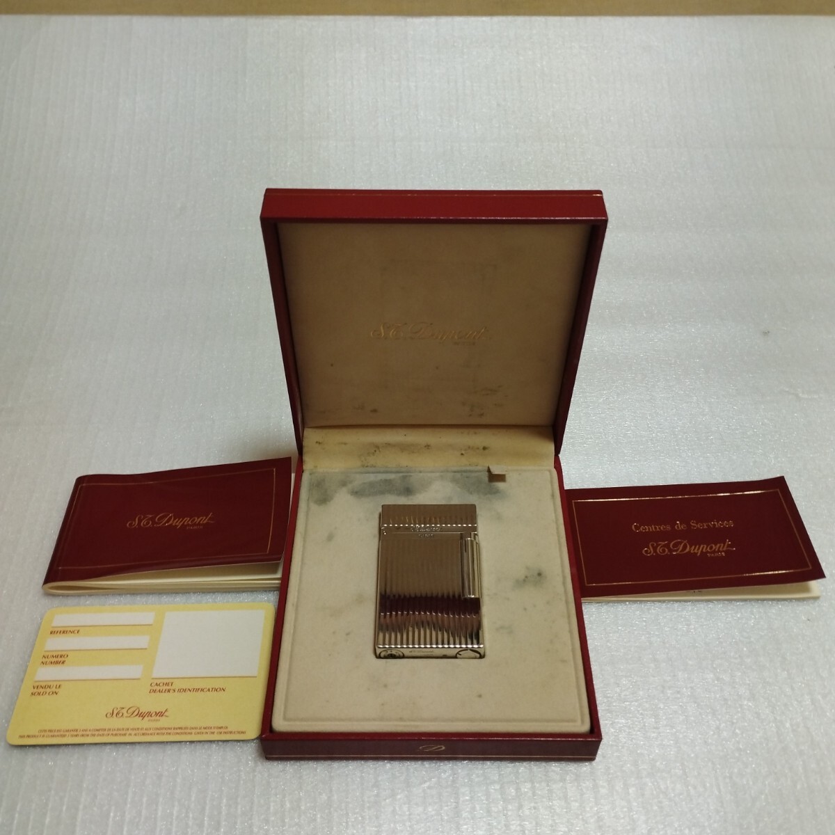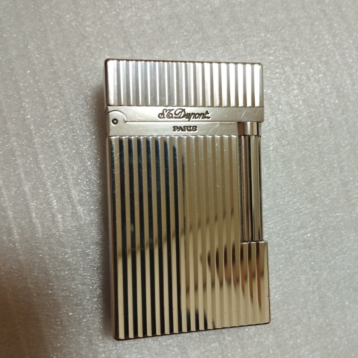 ◆美品 S.T. Dupont デュポン LINE2 ライン2 モンパルナス ストライプ ローラー ガス ライター シルバー 銀 喫煙