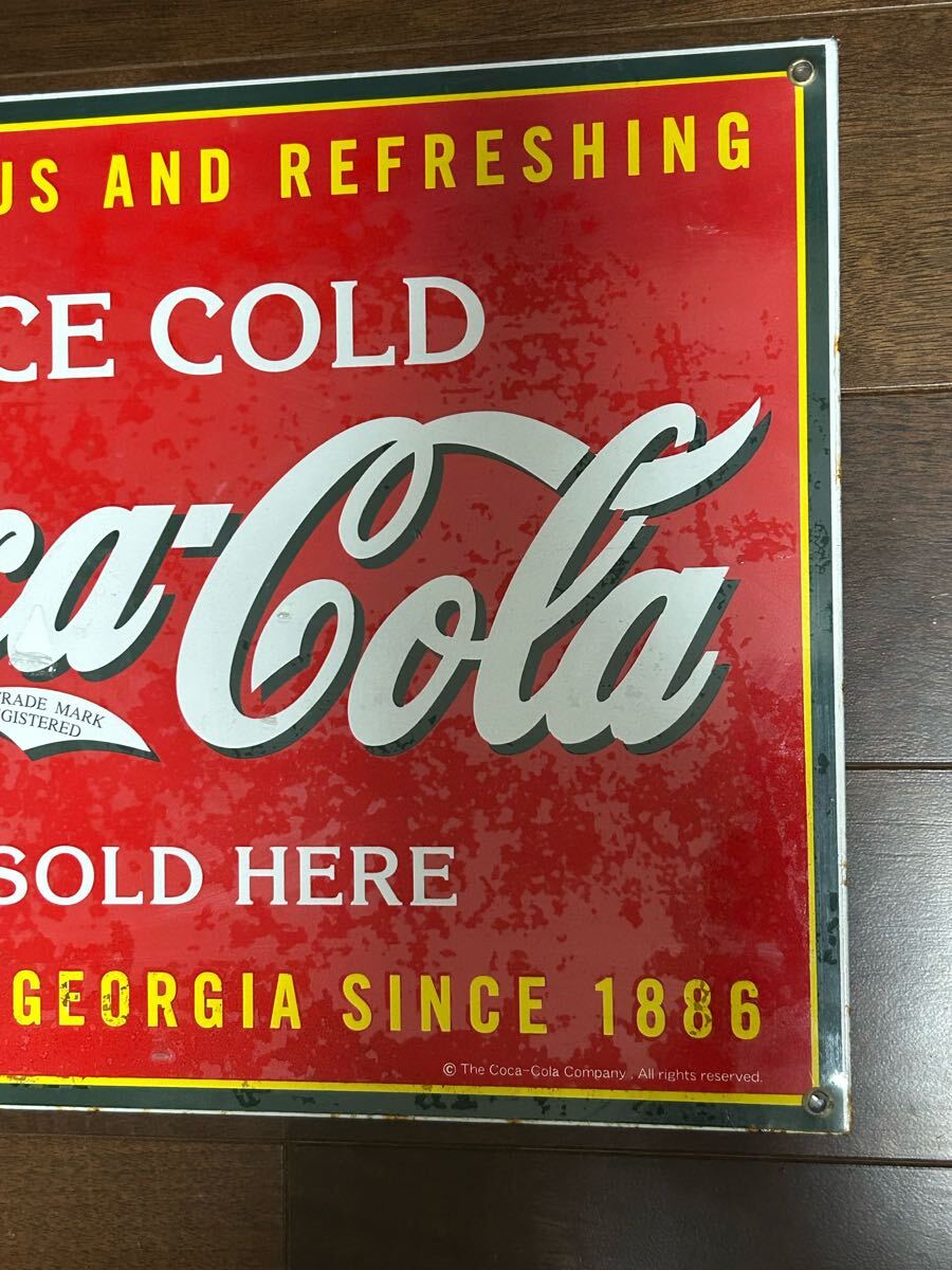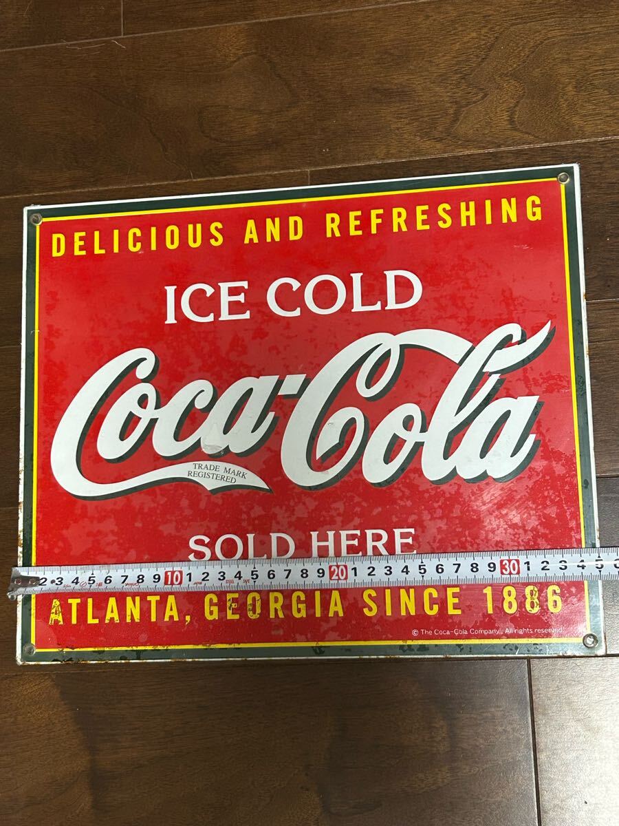 コカコーラグッズ正規販売店 ペニージャパンのライセンス取得済みサインプレートフィルム未開封ですが角に少しサビありです。縦約29cm 横約35cm 重量約1.3kg 写真確認お願いします。