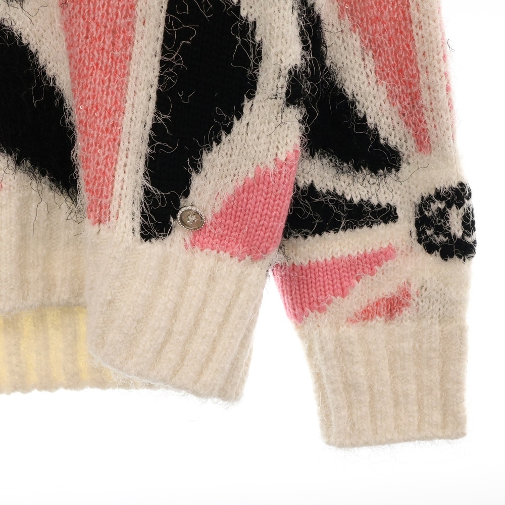 CHANEL シャネル プルオーバーニット 白×ピンク×黒 カシミヤ サイズ34