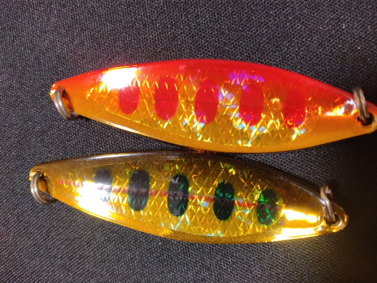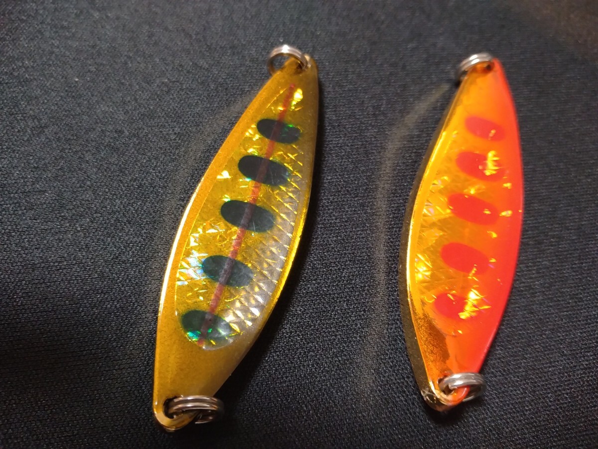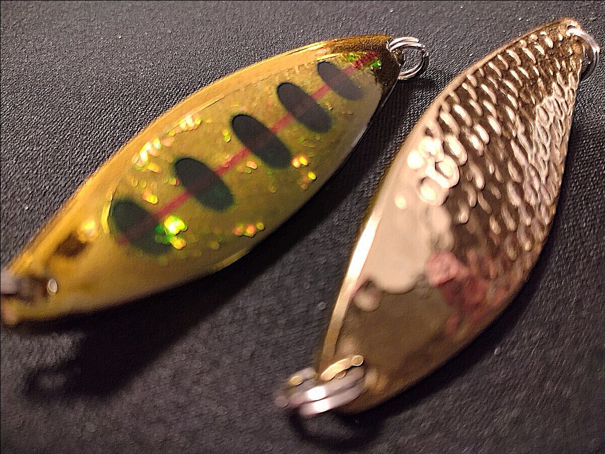 | 商品説明 | 世界初の凹面塗装スプーン 新品 パッケージ入りです。 訳あって市場では入手が困難の状態になってしまいました。 急本流・大淵・大岩のえぐれ・滝壺の大物サクラマス、イトウ、アメマス、レインボーにどうぞ。 ■メーカー: noby’s blue ■商品名: ボトムトレーサー ■自重: 24g ■サイズ 全長: 約 63mm 全幅: 約 17.8mm 厚さ: 約 3.6mm ※一般的なスプーンよりもかなり厚目です。 ※現在、出品中の同社N・B社の鱒一番と比較すると、細身のシェイプにする事により重量と巻き抵抗を抑え、スピニングライトタックルや極細ラインでの急流の攻略を可能にしました。 ■カラー: GYA ゴールドヤマメ【金黒】GAMゴールドアマゴ ※凸面は地色金のハマードです 本流の重い流れにも浮き上がりにくい肉厚シェイプ.。 従来は攻めきれないポイントの攻略を可能にしました。 その他は画像のとおりです。 画像により裏表を同時に撮影する為に複数セット使用しています。 発送商品は2色各1個になります。 ご不明な点は入札前にご質問をお願いします。 ■他サイズ【3.5g】【5g】の4色セットも出品中!要チェック!■ ★★ 他にも多数出品しておりますので宜しければご覧下さい。★★ ★バンダイルアー出品数、多分ですが世界№1だと思います!★ ※より多数の出品をご存じの場合、質問欄より是非ご一報下さい! ★★ 常時、希少ルアー500個以上出品中!要チェック!★★ 一般市場では中古以外、入手困難な撤退・倒産・訳ありメーカーの新品です。 ※出品者の出品リストより是非一度だけでもご覧下さい。 ・入札後のキャンセルに付きましては原則お受けできません。 ・ノークレーム・ノーリターンでお願い致します。 ・評価が著しく悪いと思われる方は削除させて頂きます。 ・新品未使用品ですが極端に神経質な方はご遠慮下さい。 あくまでも実使用を目的とした釣道具です。工芸品レベルの様な 高品質をお求めになる方はご入札をご遠慮下さい。 製造工程の小傷、輸送・保管中の多少の擦れなどはご容赦下さい。 ・発送の際は新品未使用のハードプラスチックパッケージに入れて の発送となります(ラベル無し) ※元箱付きは除きます。 ルアーのサイズにより1個のパッケージにプラグで3~5個、 スプーンで50個位まとめての発送とさせて頂きます。 過去に約6000件の実績があり、破損などトラブルは皆無。 なお、緩衝材などには再利用品などを使用する場合がありますので 予めご了承下さい。 |