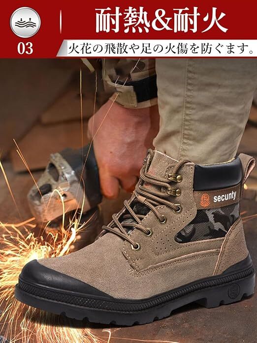 安全靴 作業靴 ハイカット 溶接用 革 軽量 防水 通気性 耐熱 耐火 釘踏み抜き防止 鋼先芯入り 耐摩耗 衝撃吸収 サイズ:26cm