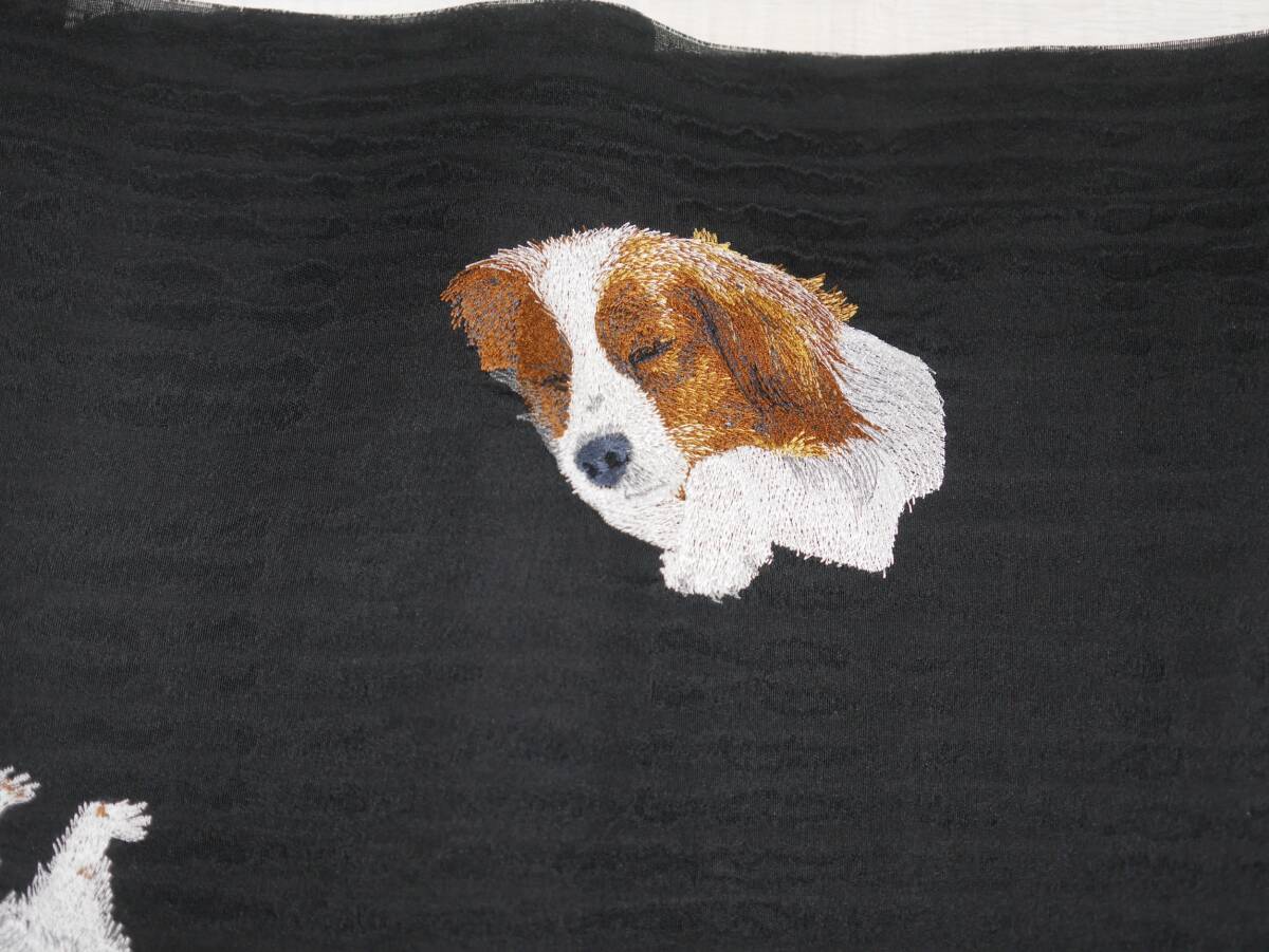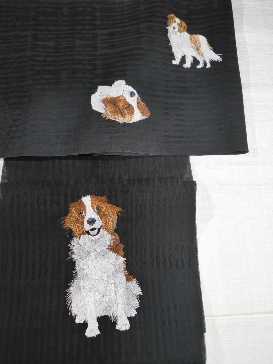 西陣織の名門大光(株)より人気の愛らしいデコピンちゃんが刺しゅう上がりで仕上がってきました。刺しゅう上がりなので立体感のある飛び出しそうな仕上がりです。お腹柄にもお散歩と居眠りの可愛いデコピンちゃんがいます。可愛いデコピンちゃんとお出かけしましょう。お仕立てには三河の帯芯を使用して手縫い仕立てにて仕上げます。お仕立てには1週間前後のご猶予お願い申し上げます。