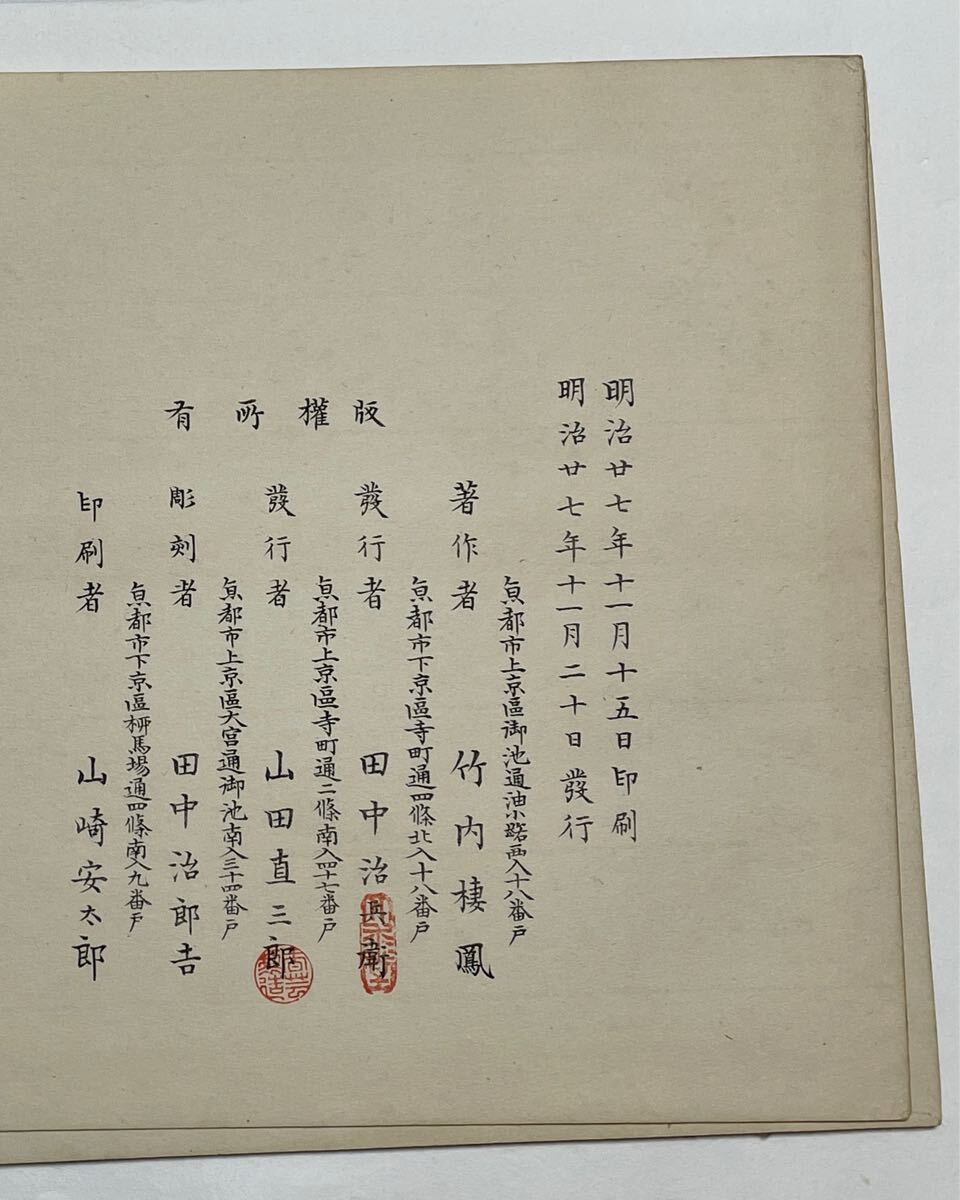 ・京都の老舗の木版画の版元「芸艸堂(創業者 山田直三郎)」より、明治27年に擦られた年代ものの手擦りの真作木版画になります(最後の写真ご参照ください。この版画についていた発行者等の情報が記載されたページ資料になります=この資料は版画には付属しません)。
