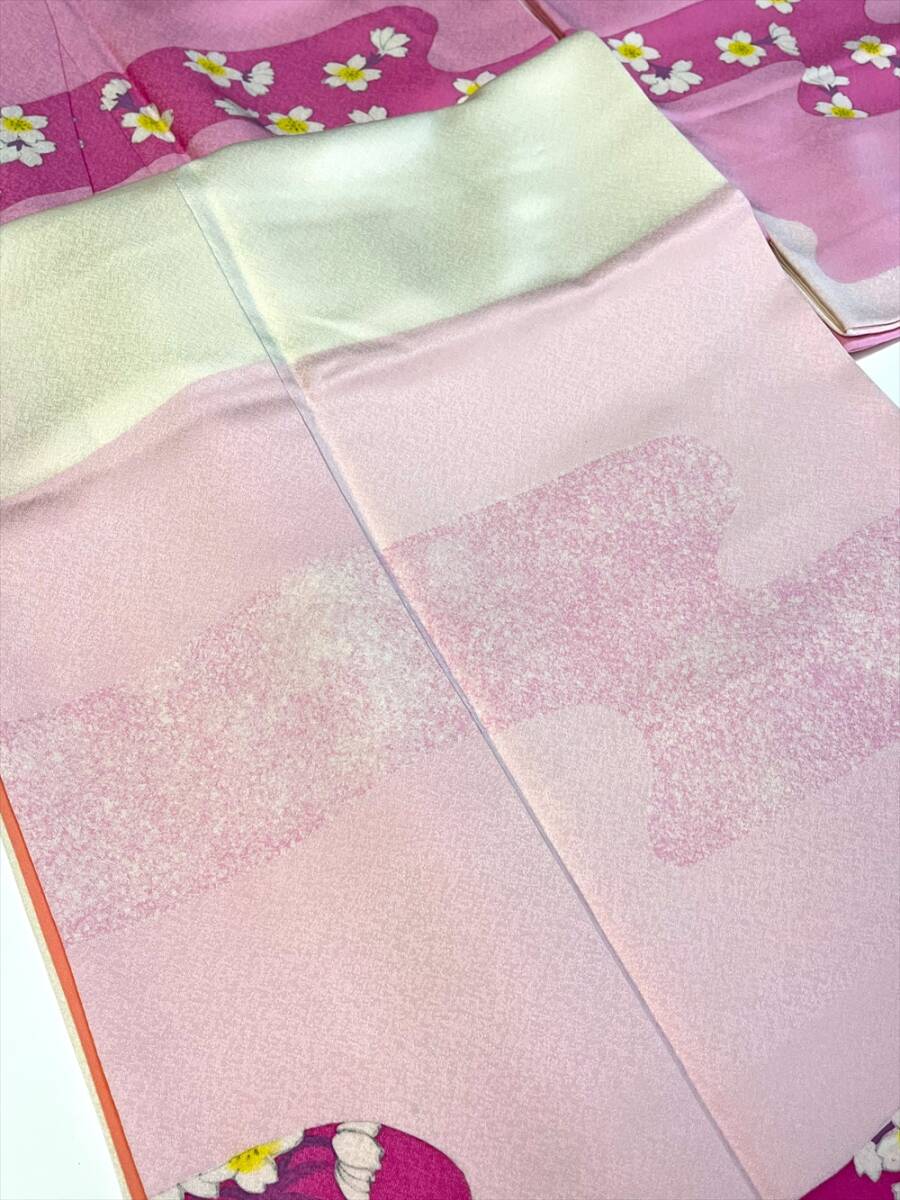 花とら●リサイクル着物 訪問着 ピンク 桜 美品 着用可能    250411