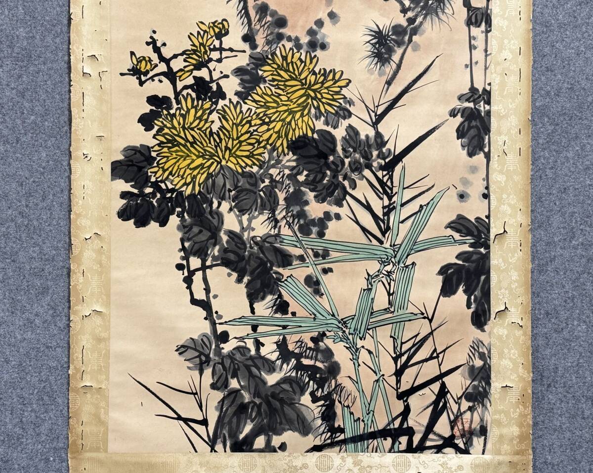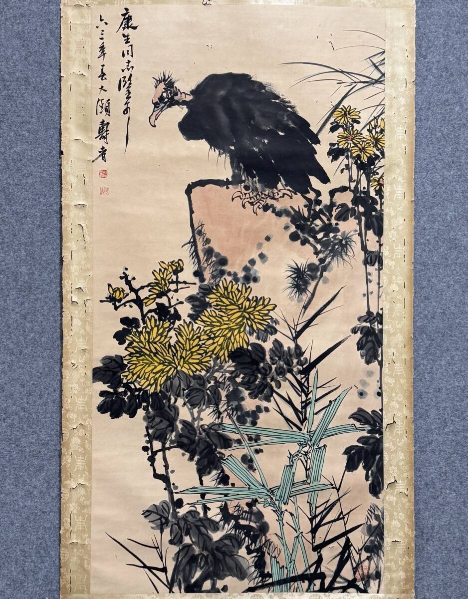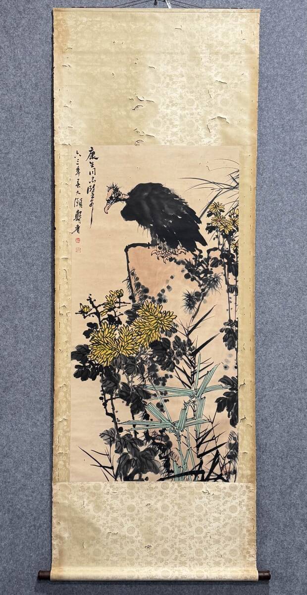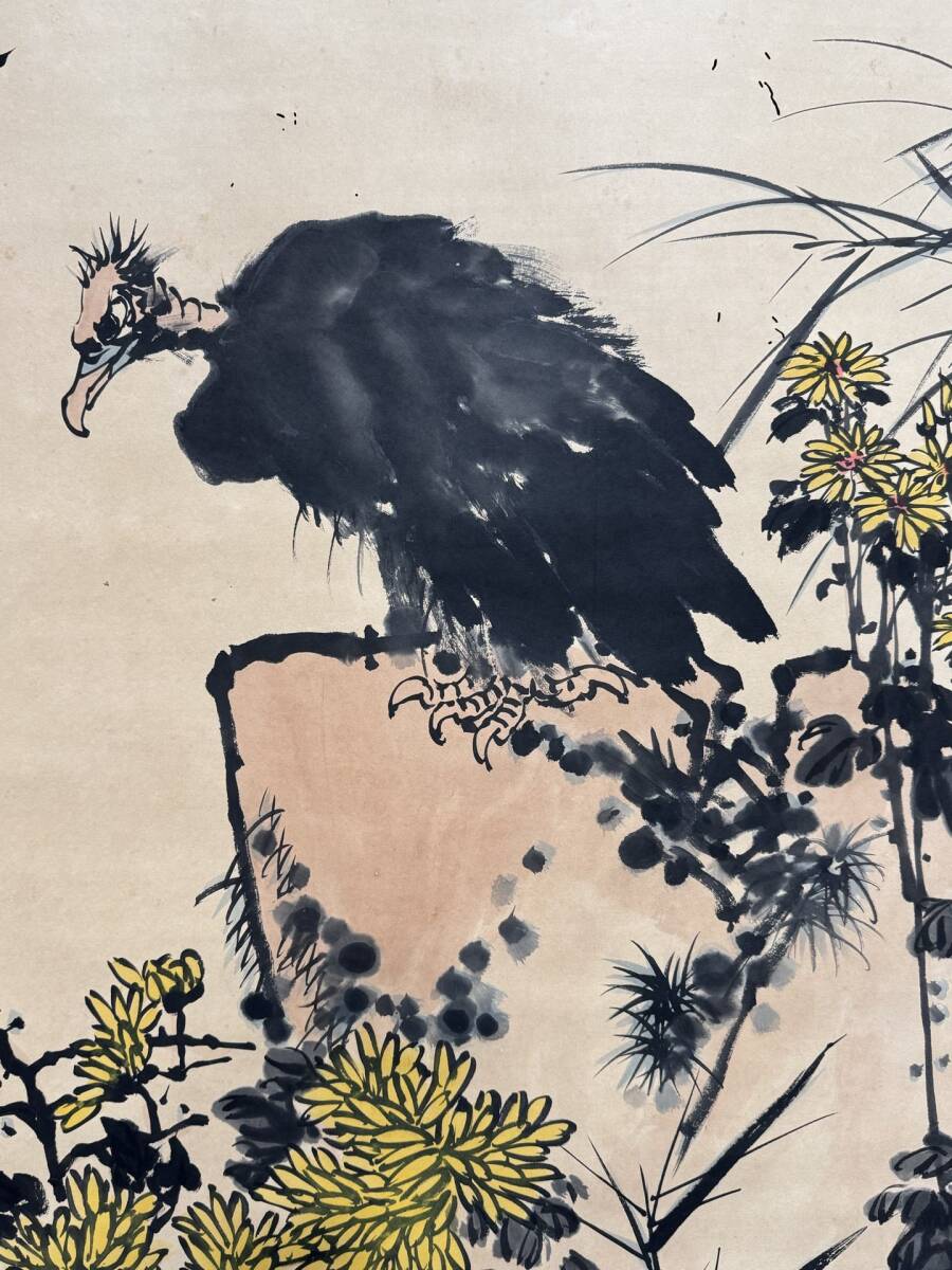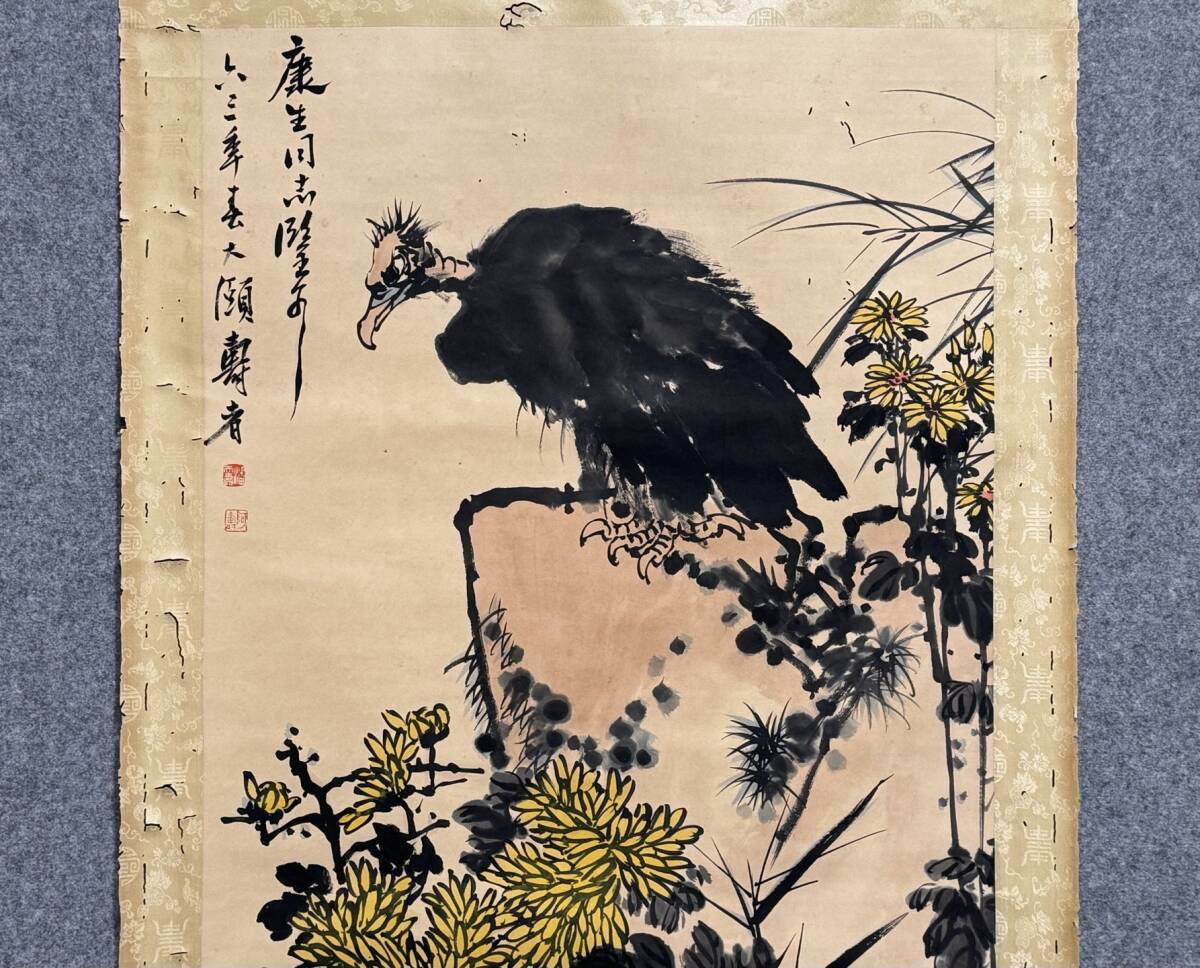 『三希堂』 中国画 古美術 [潘天寿鷹石図] 掛け軸 真筆逸品 肉筆保証 中心尺寸134X67cm ABC415
