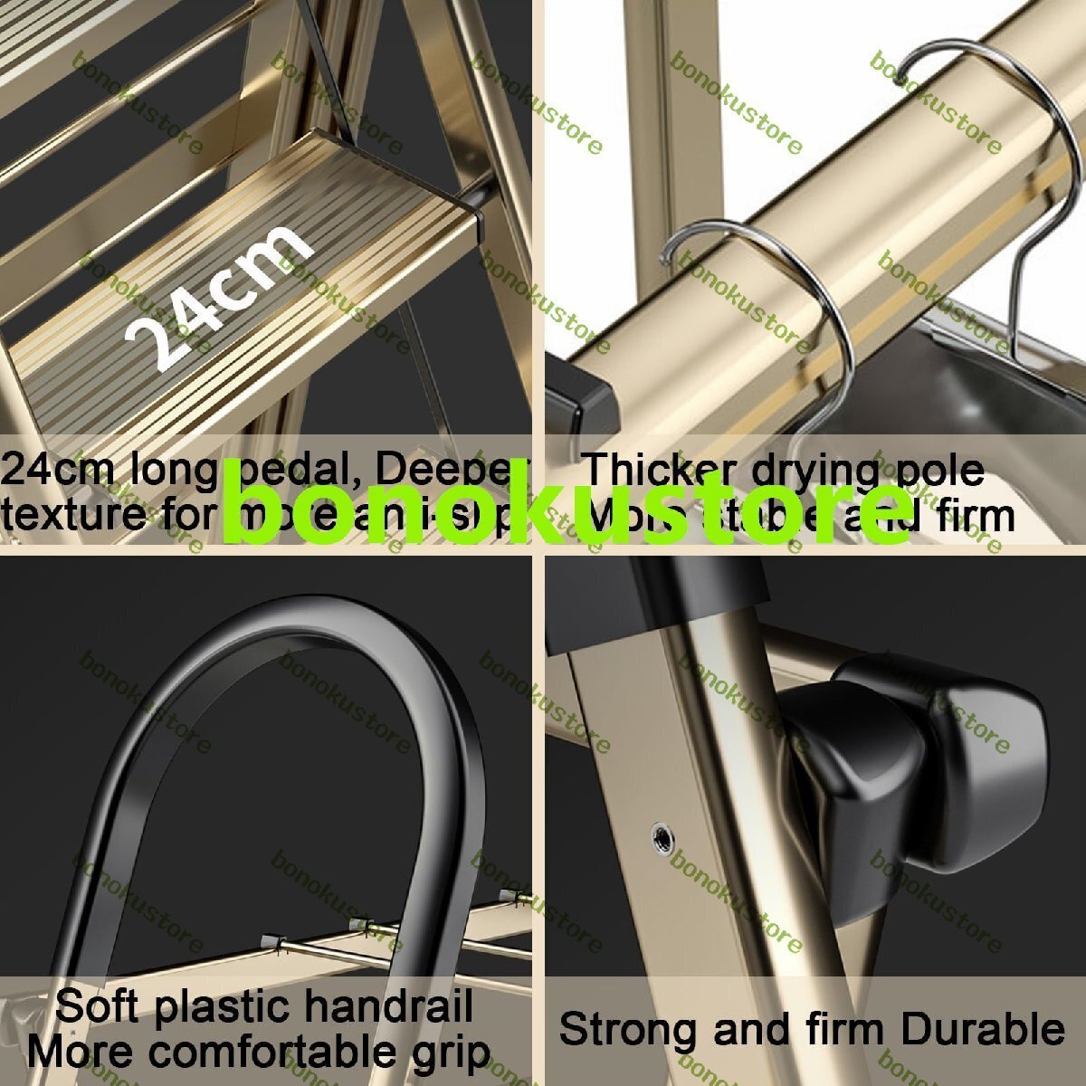 商品の説明 名前: 折りたたみ式物干しはしご正味重量: 6.3kg材質: 航空アルミ合金用途: 大人の衣類/コートの乾燥高さ: 1.6M、床の高さ 3.3M に適合荷重: 150kg箱の数: 1 台ペダルの数: 4 段ムーンライトシルバー、4 段スプレーブラック、4 段シャンパンゴールド、5 段ムーン