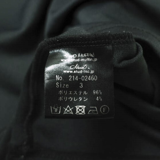 STUD MUFFIN スタッドマフィン ベアスムース ボックスフォーム&パッチ SSモックネック Tシャツ 214-02460 3 ブラック 半袖 g19653