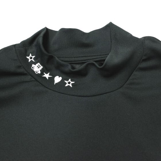モックネック部にはワンポイント刺繍とスワロ付きです。